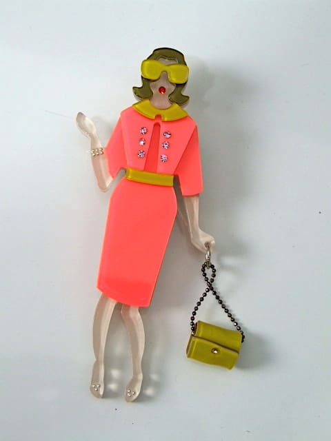 French vivid peach phenolic brooch. Hand made by the Fever – Ruby Roux company.
