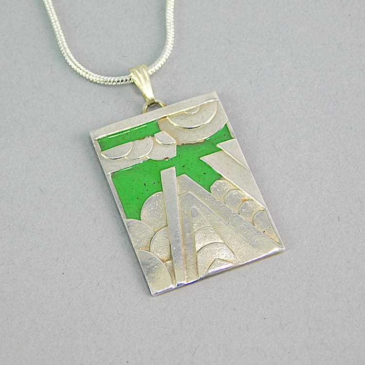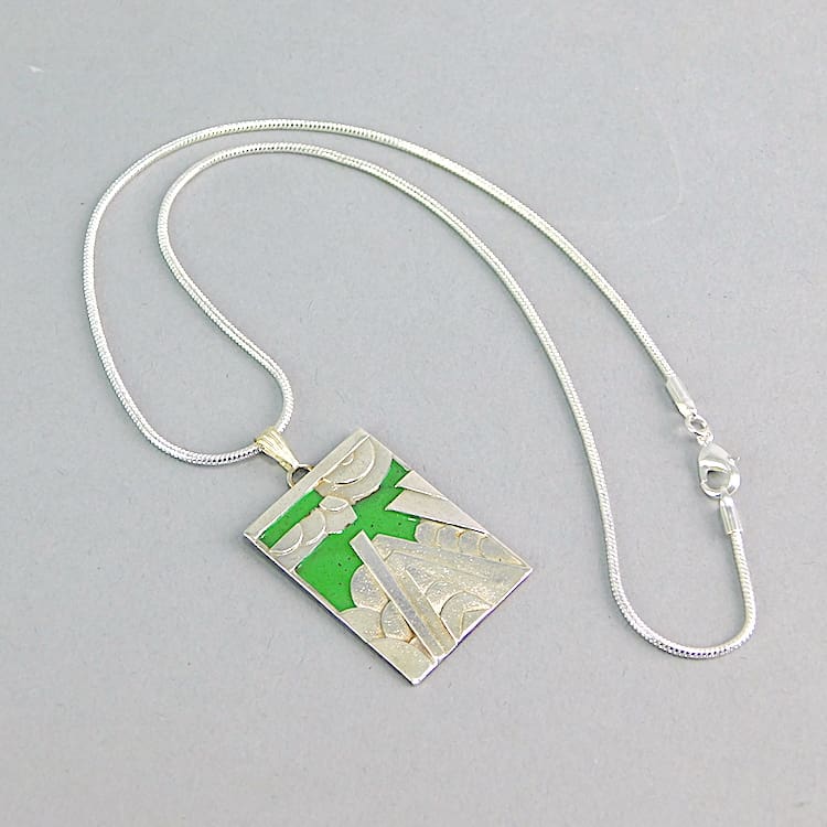 The pendant measures 1.5 inches (4cm) high and the silver chain measures 17 inches from clasp to clasp.