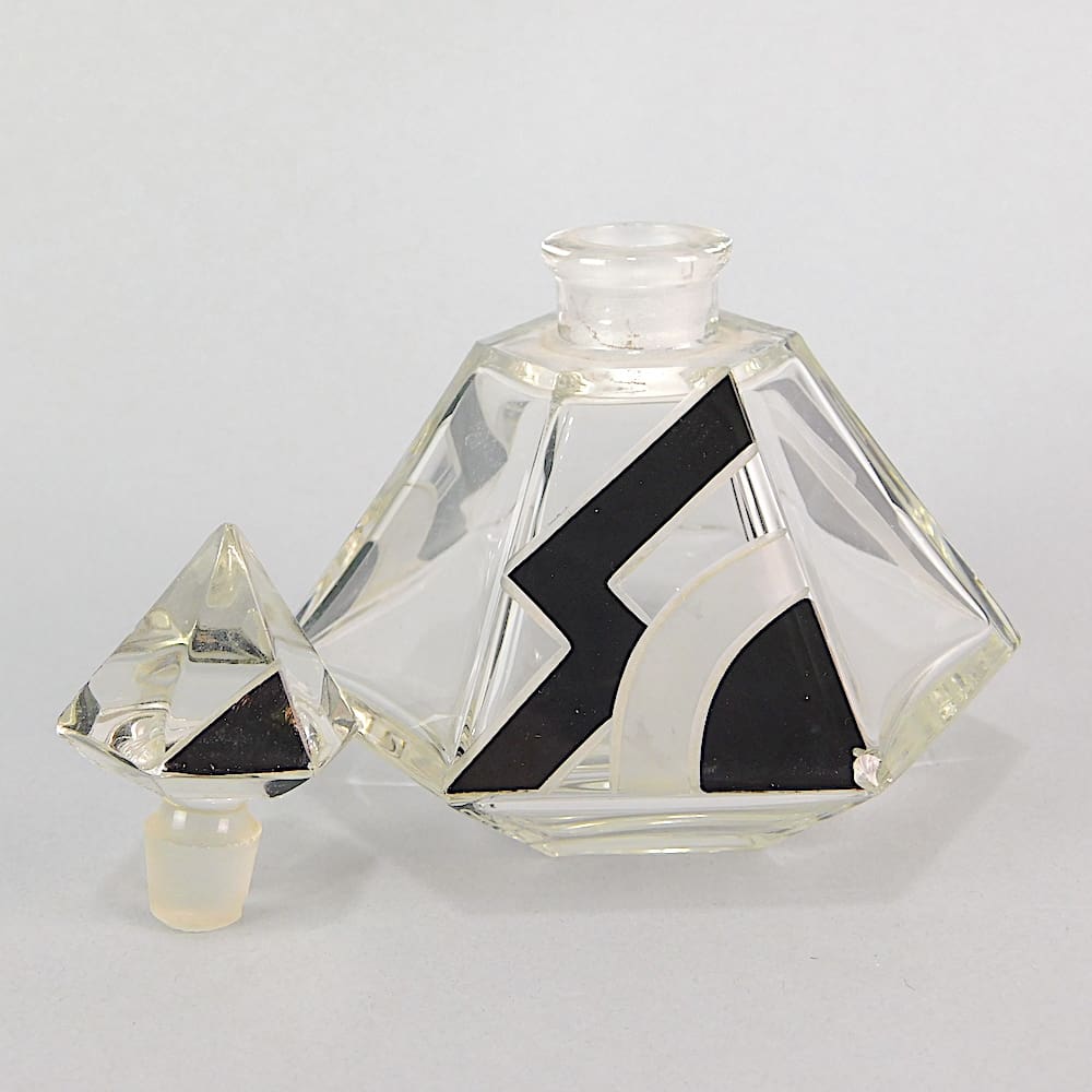 The condition is good with a small chip to the edge of the stopper on the scent bottle.