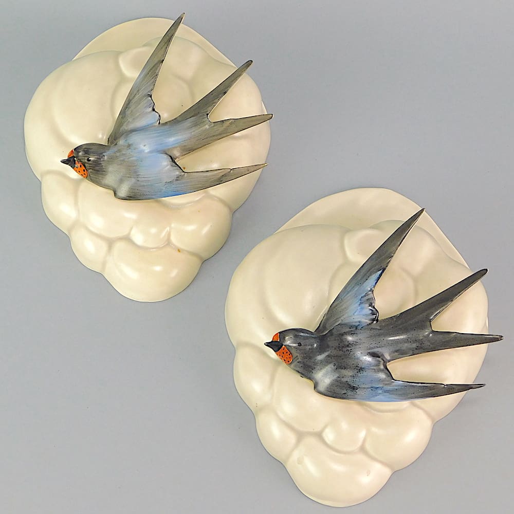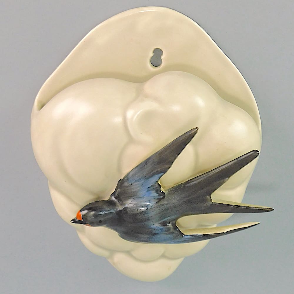 English hand painted mushroom glaze swallow and cloud wall pocket.
