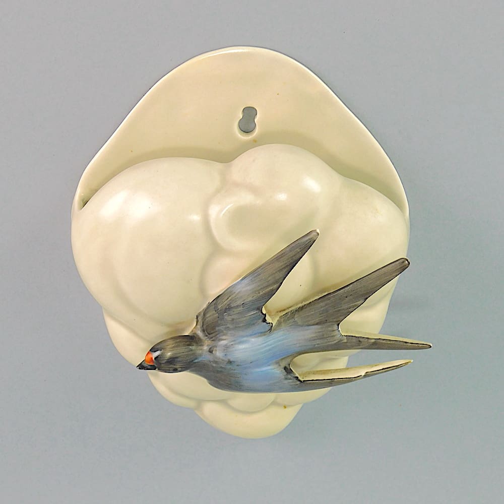 English hand painted mushroom glaze swallow and cloud wall pocket.