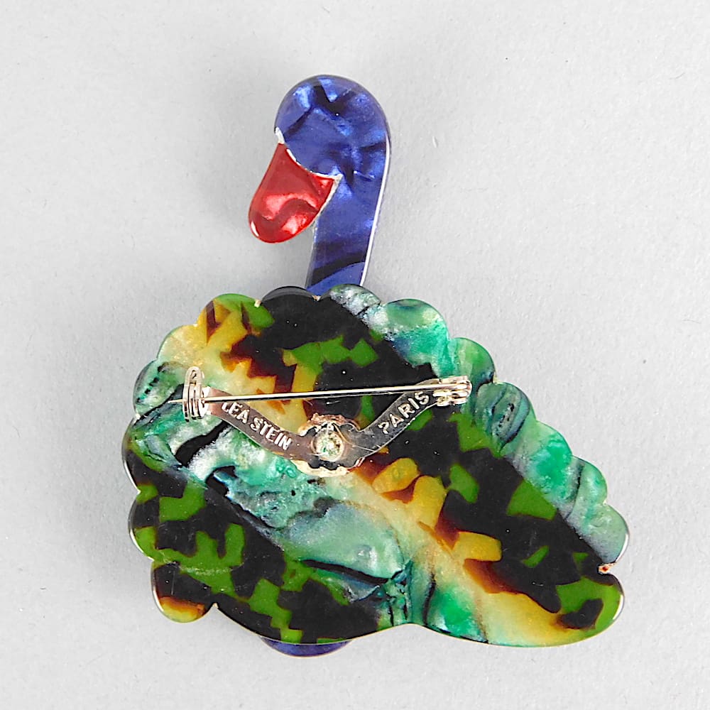 A multi feather swan brooch by Lea Stein, signed on the V safety clasp.