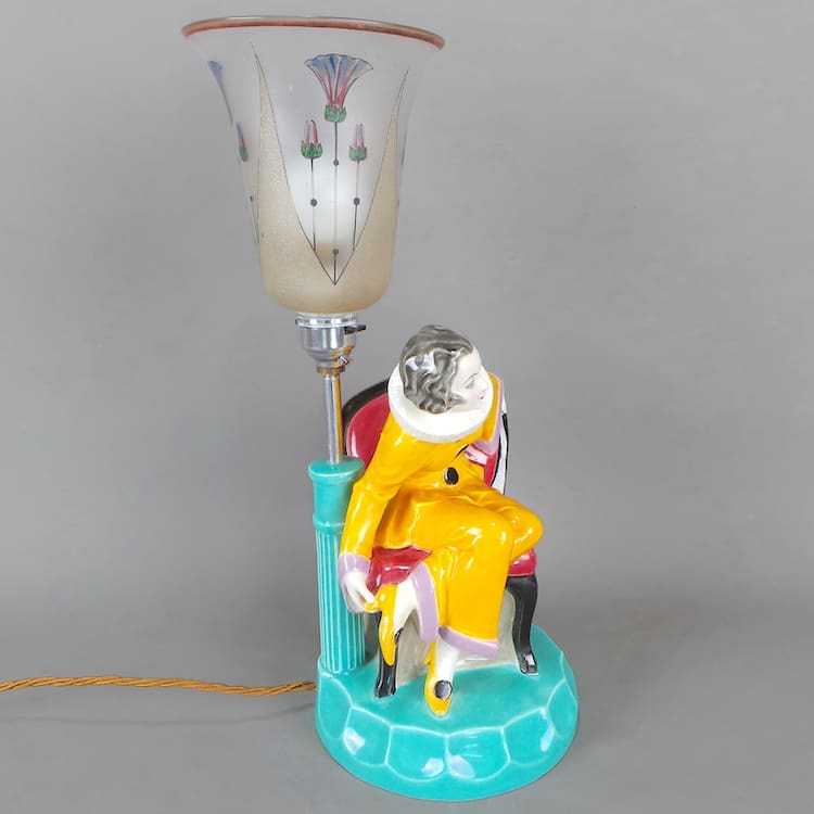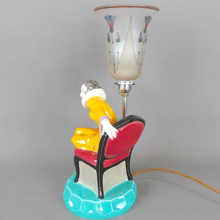 Rare Austrian hand painted Art Deco ceramic table lamp.