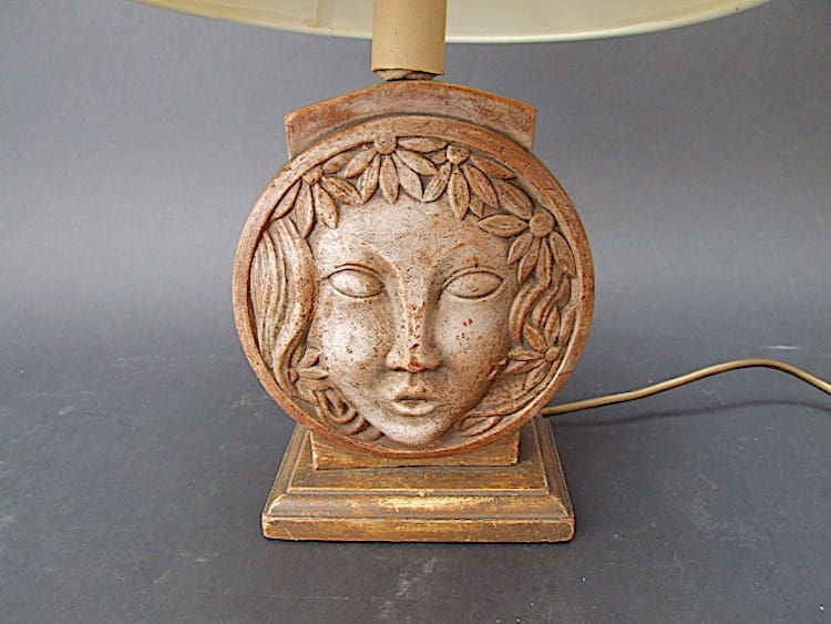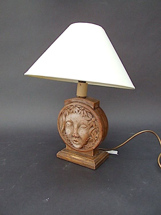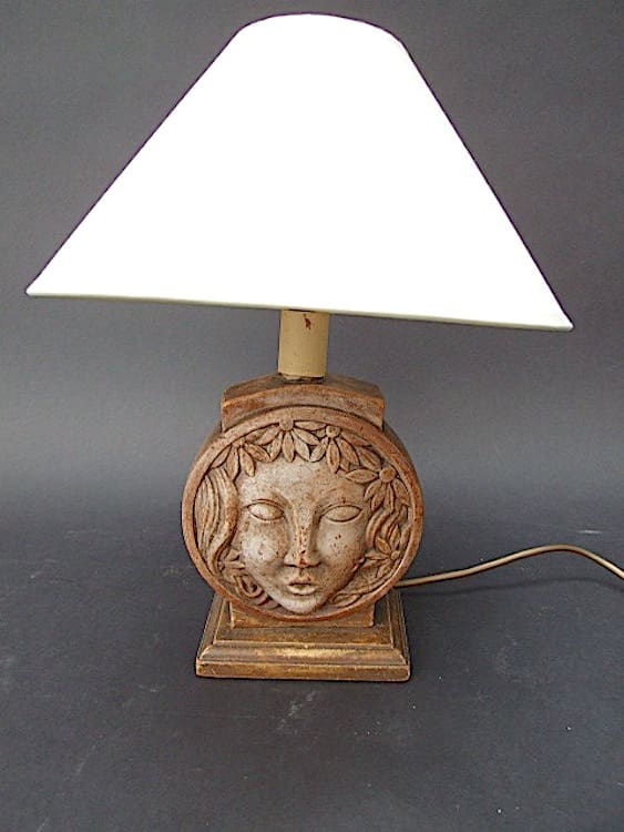 Fabulous two faced terracotta table lamp, each side has a different face on it.