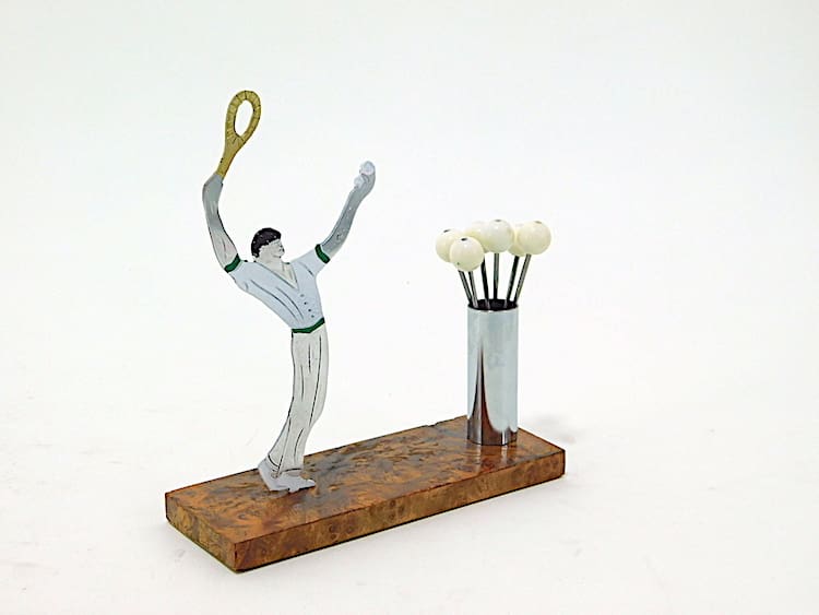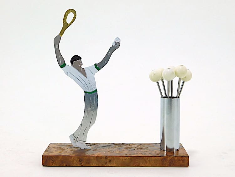 A French unsigned Sudre cocktail sticks set, made by the Cado company. Base is made of amboyne wood.