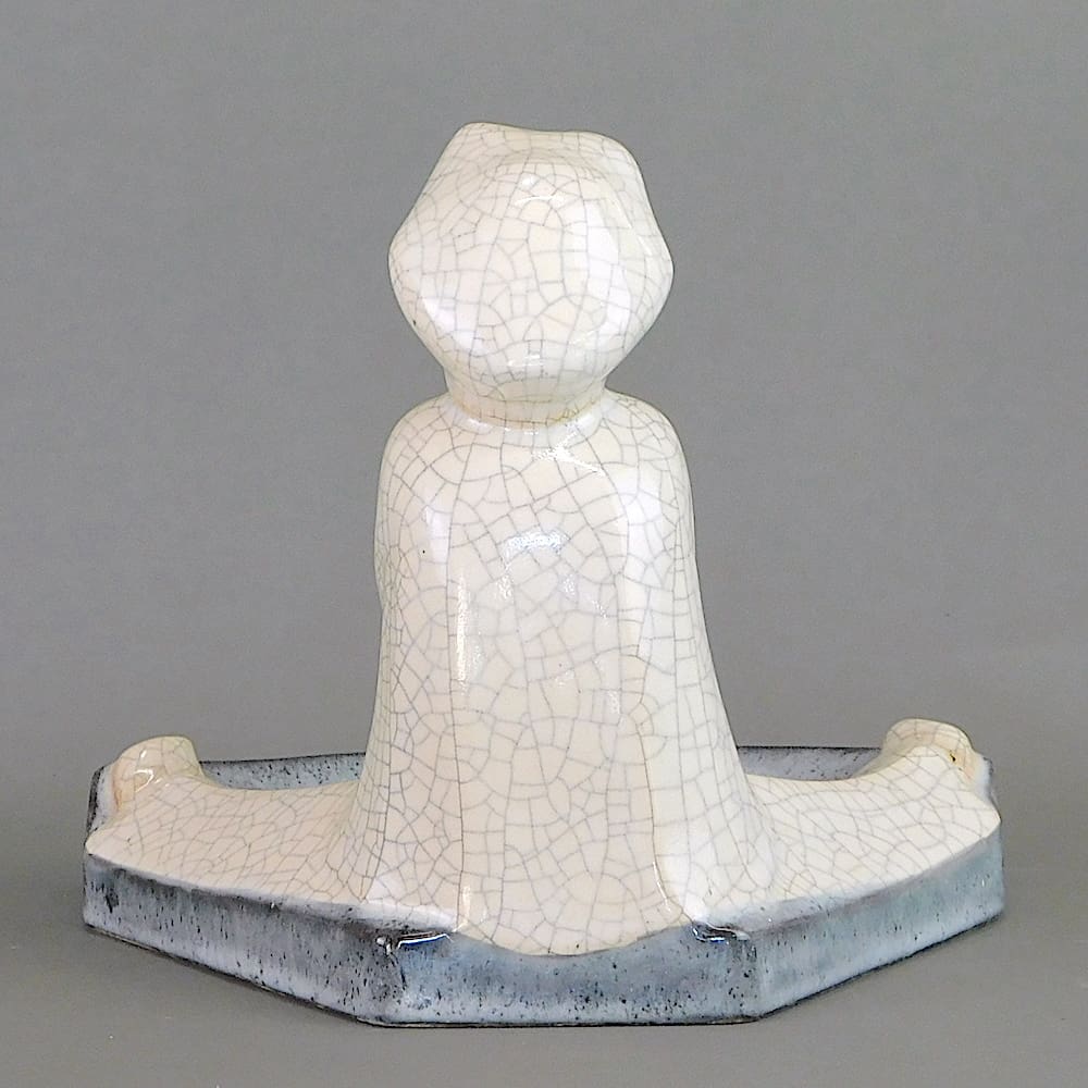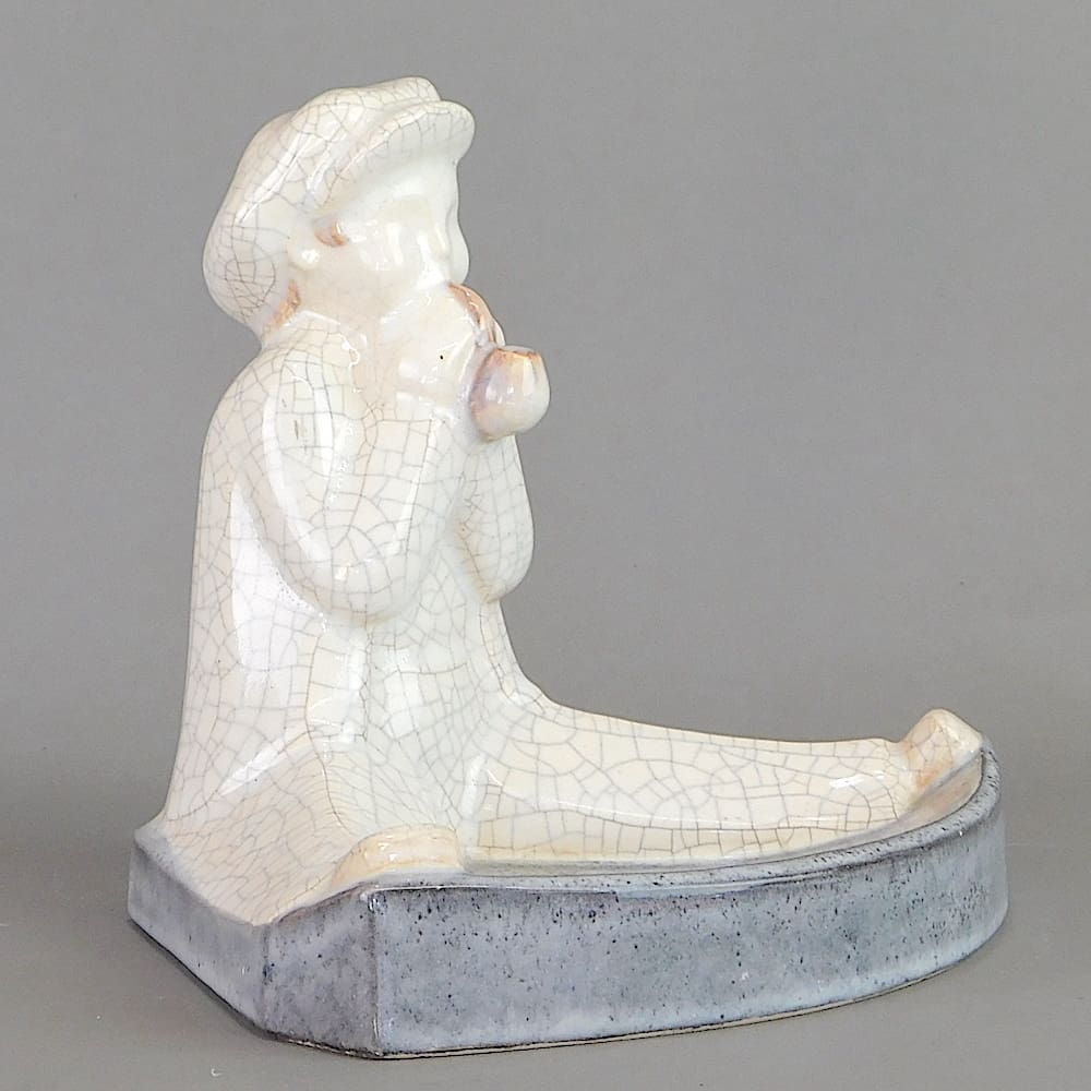 Extremely rare French white terracotta craquelier vide poche dish of a boy smoking a pipe.