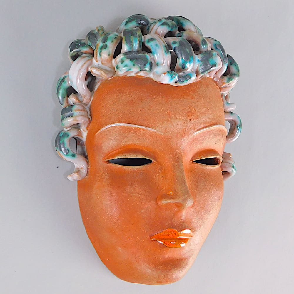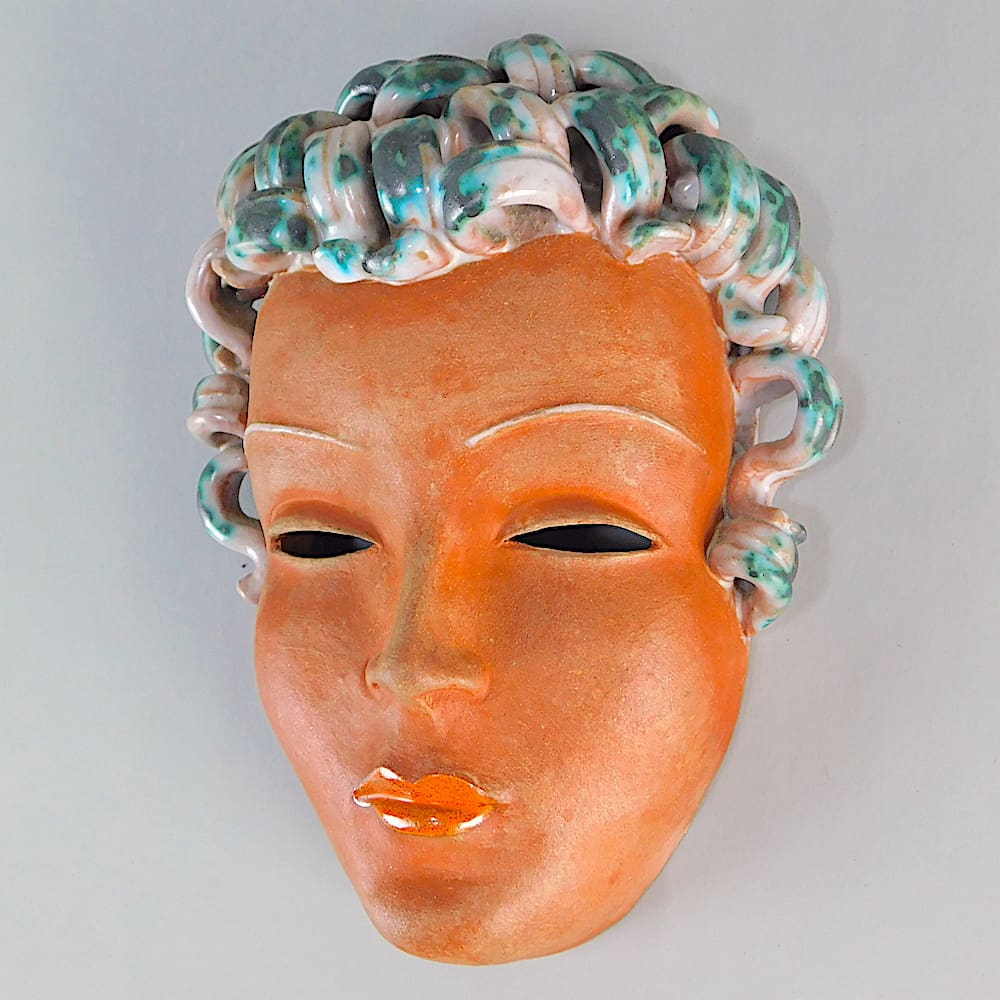 Another wall mask in Goldscheider style with the Goldscheider curls and with an unusual turquoise and black patterning.