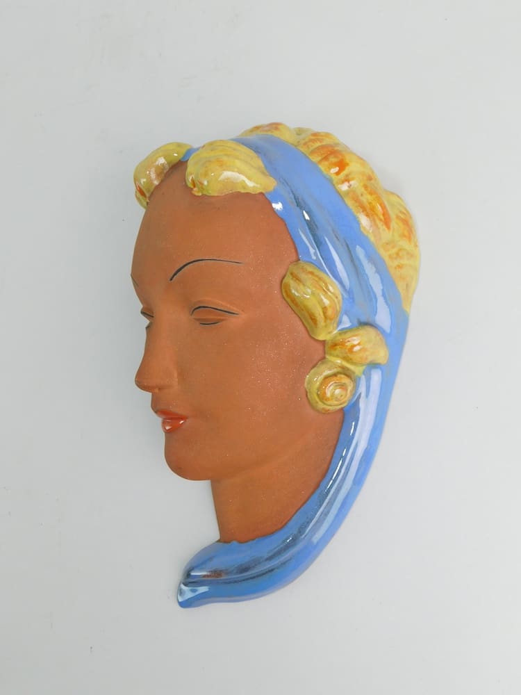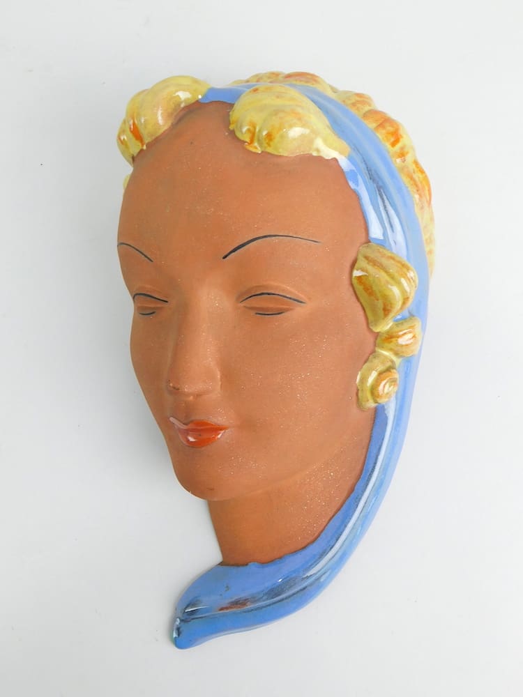 Lovely Czechoslovakian terracotta wall mask by Keramia, stamped to the reverse.