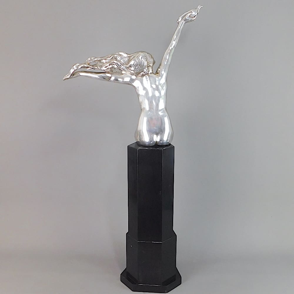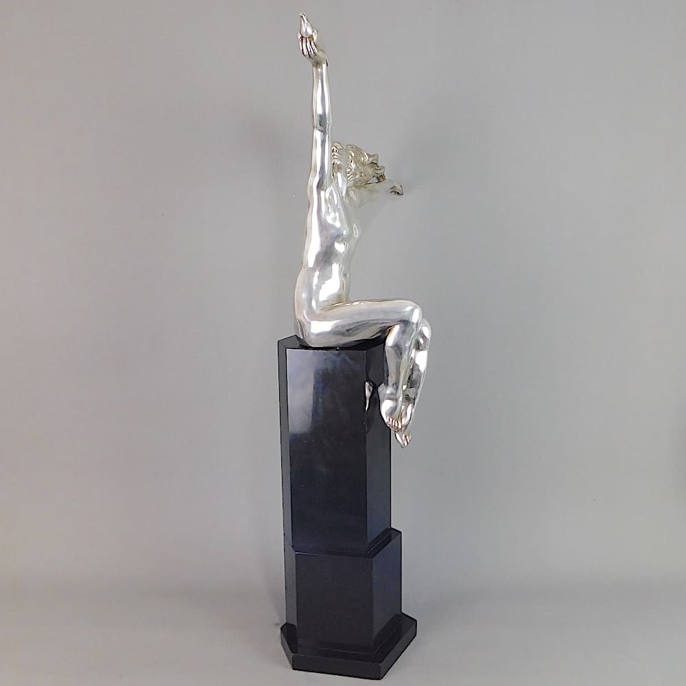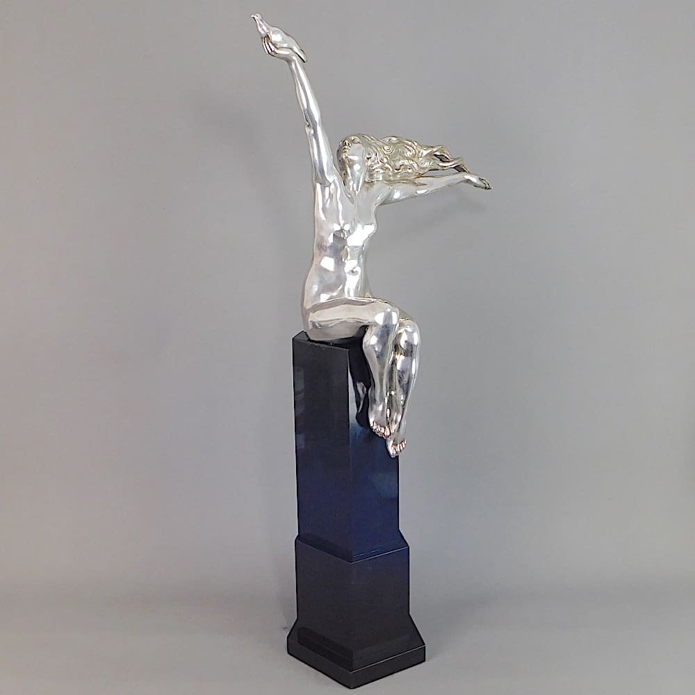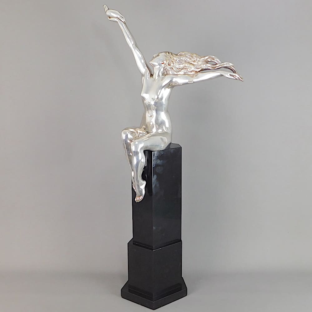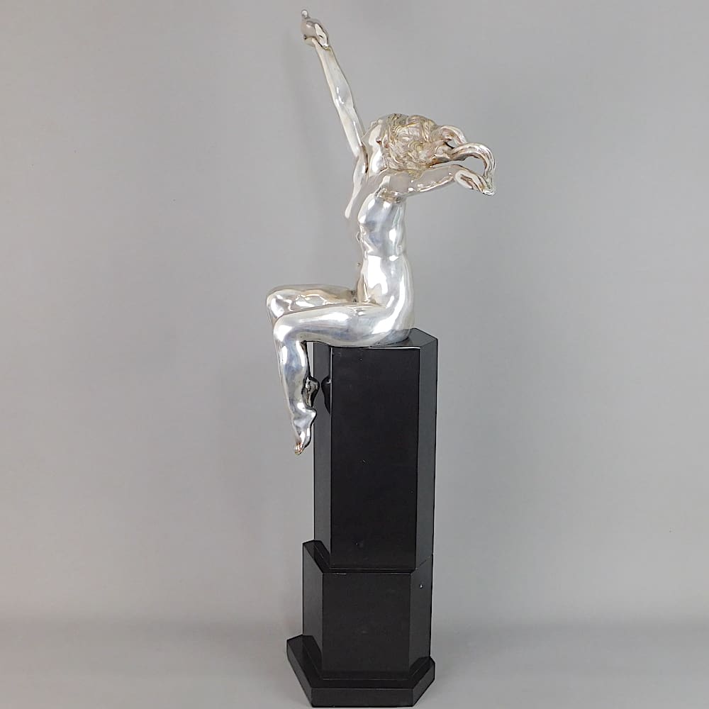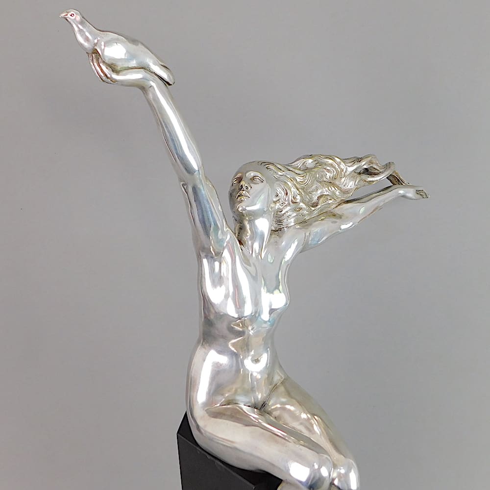 Huge French silvered bronze art deco statue known as the Carrier Pigeon.