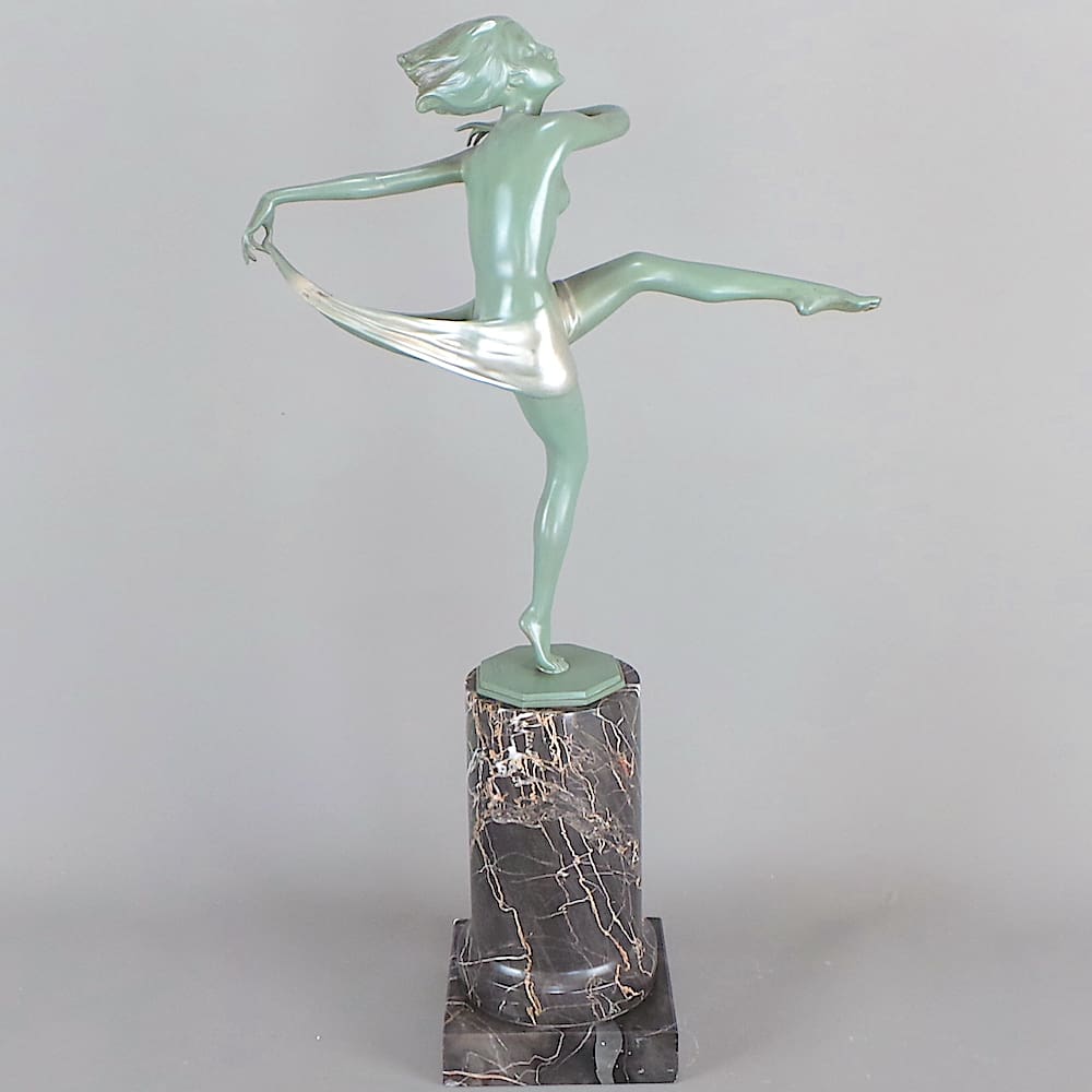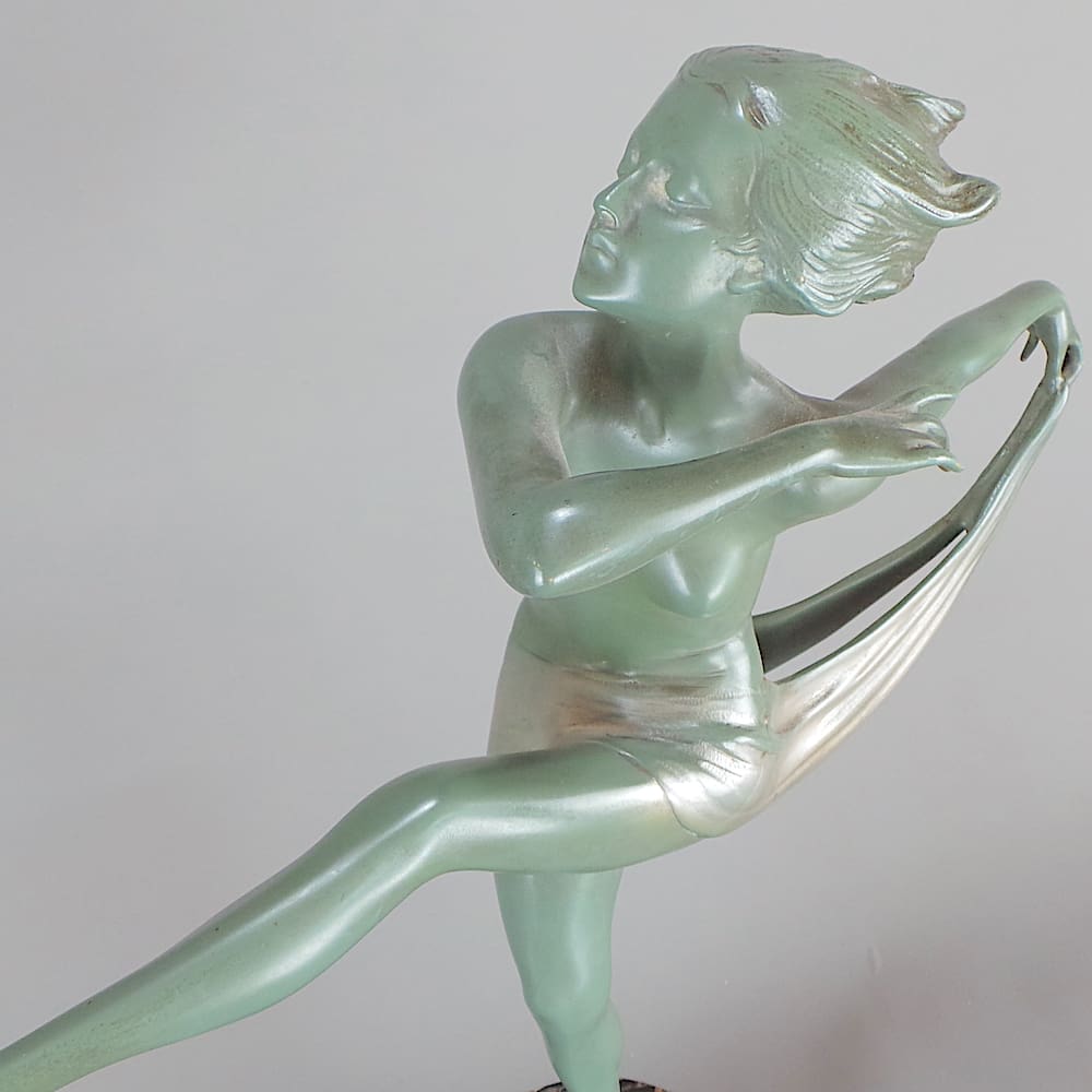 Austrian green patinated bronze dancer, designed by Josef Lorenzl in the early 1930s.