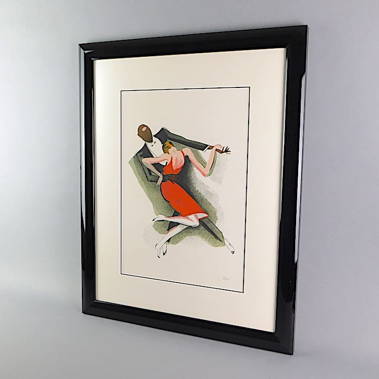 French reprint of an art deco poster depicting two dancers.