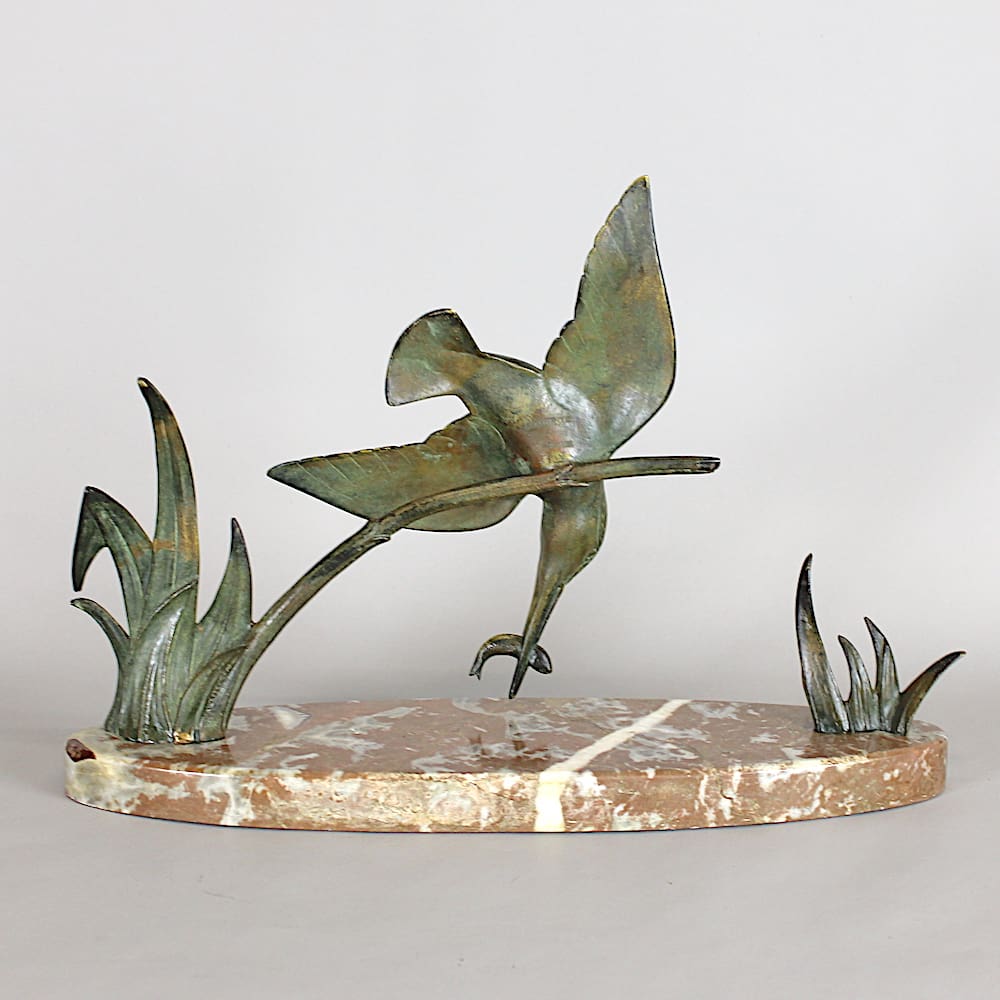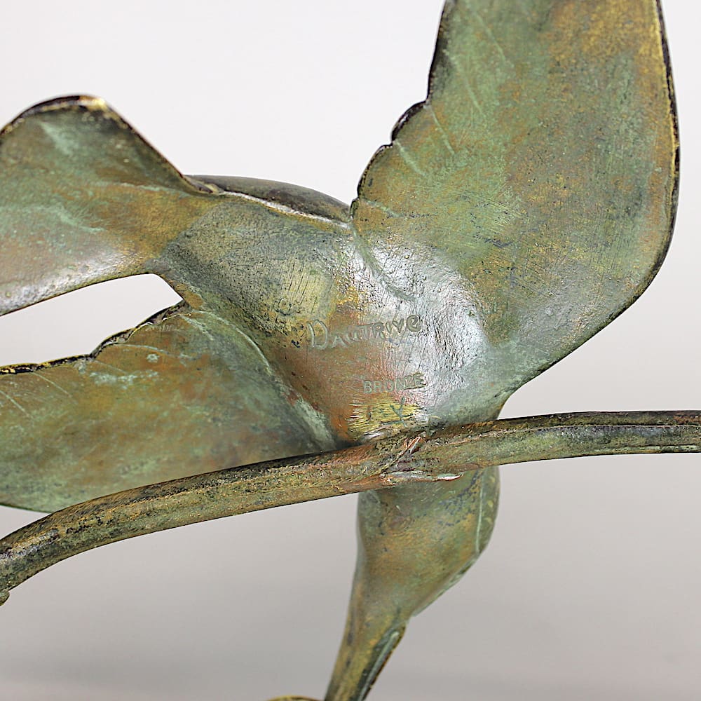 French Bronze art deco diving kingfisher with a fish in its mouth.