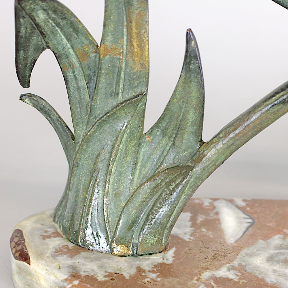 One reed is signed Limousin while the back of the bird is marked Dautrive, this suggests a collaboration between artists with Limousin designing the reeds and Dautrive modelled the bird and fish.