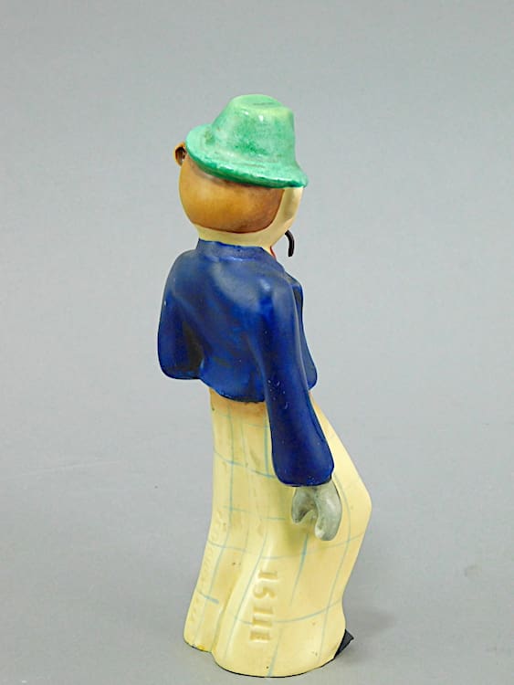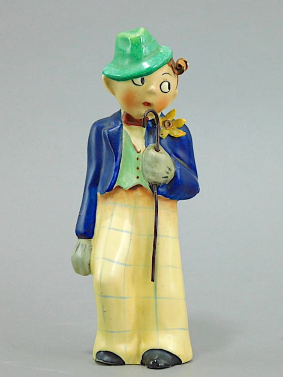 Ceramic figure of Charlie Chaplin with a metal cane, beautifully hand painted, possibly by Royal Dux.