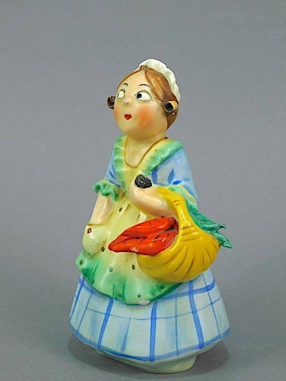 Ceramic google eye lady, beautifully hand painted, possibly by Royal Dux.