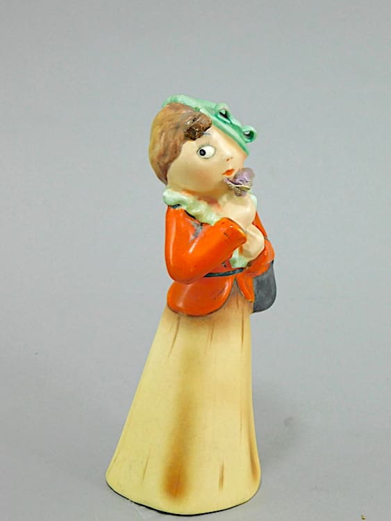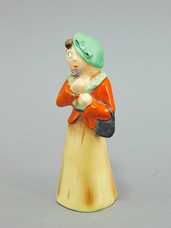 Ceramic figure of Mary Pickford holding a flower, beautifully hand painted, possibly by Royal Dux.