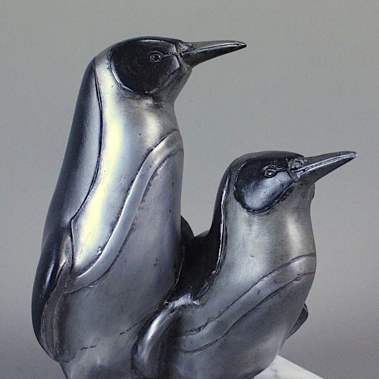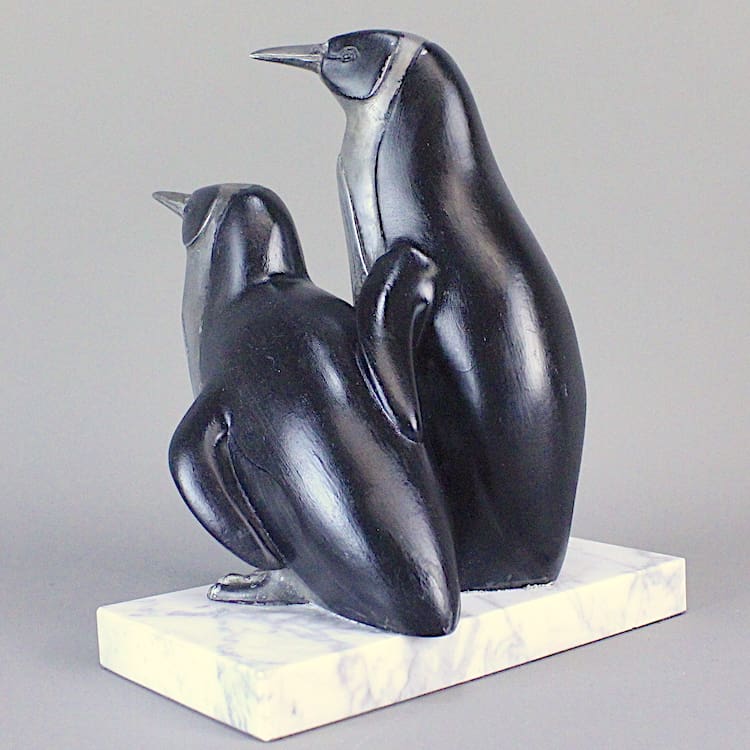 French Art Deco spelter Penguins statue.