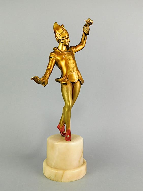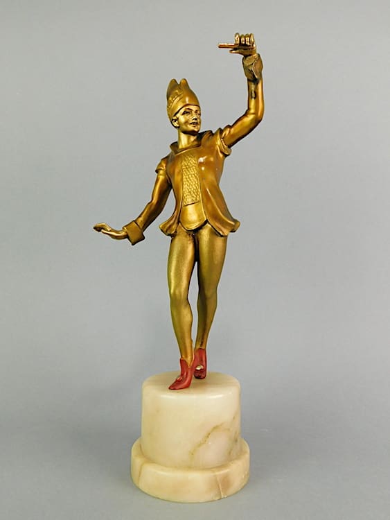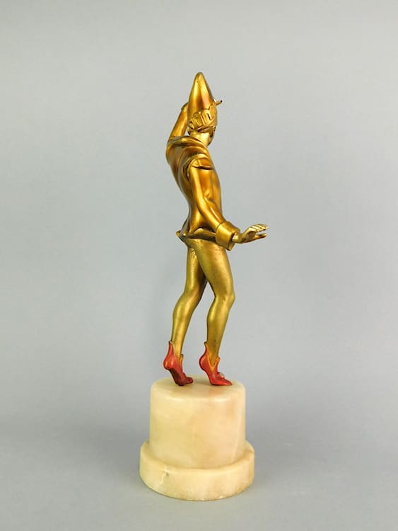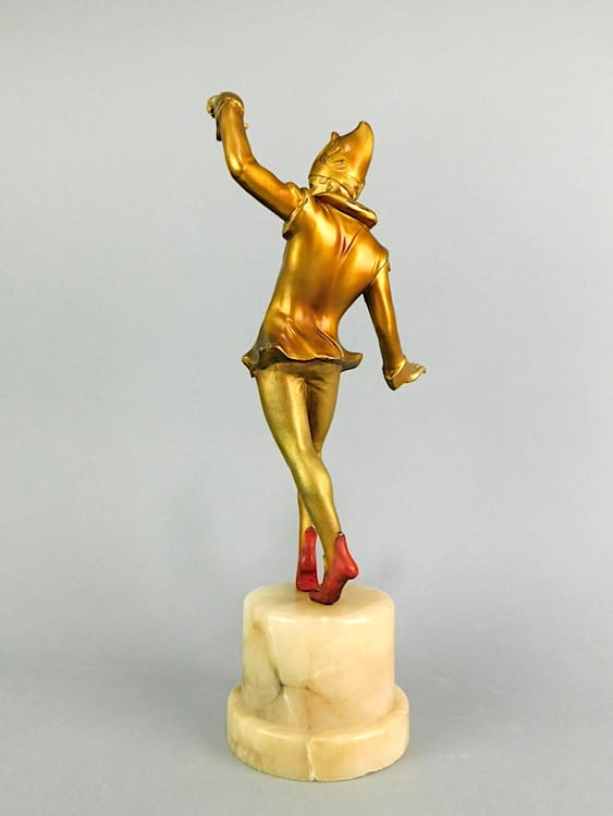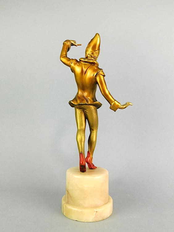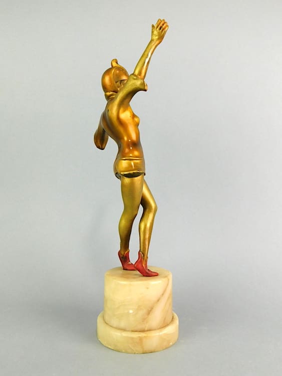 Pair of gilt and patinated spelter circus performers mounted on alabaster bases – possibly by Lorenzl.