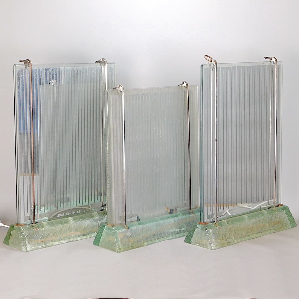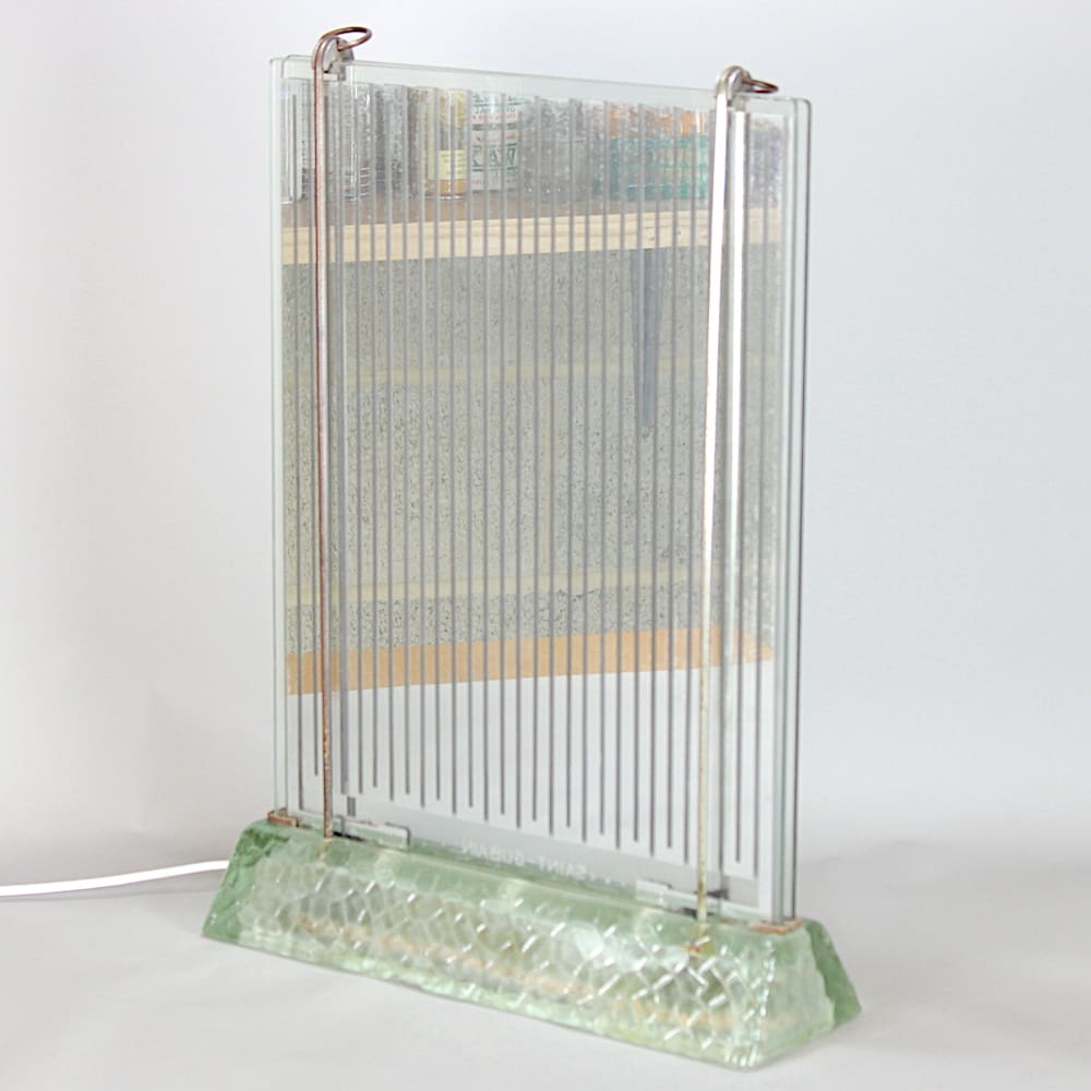Electric glass radiator/lamp with moulded glass base, designed by Rene Coulon (1908-1997) for French glass maker Saint Gobain and in production from 1937 up until 1952.