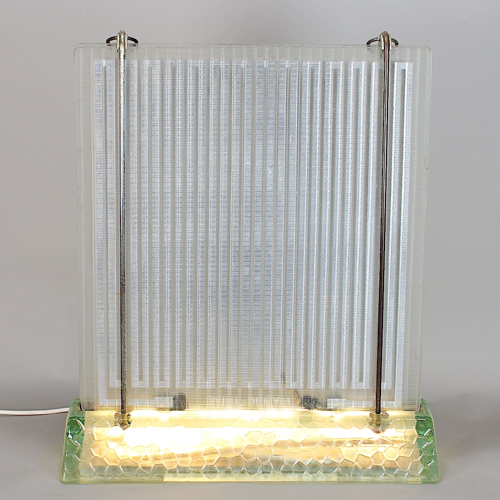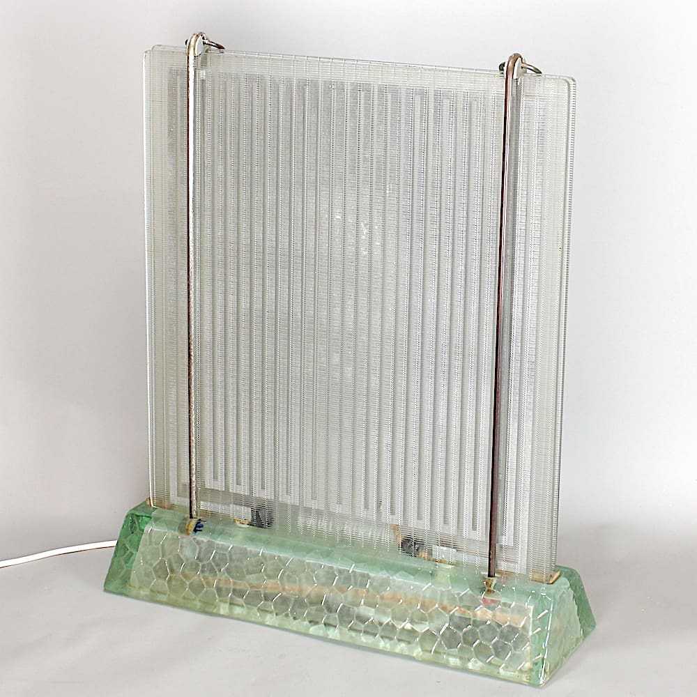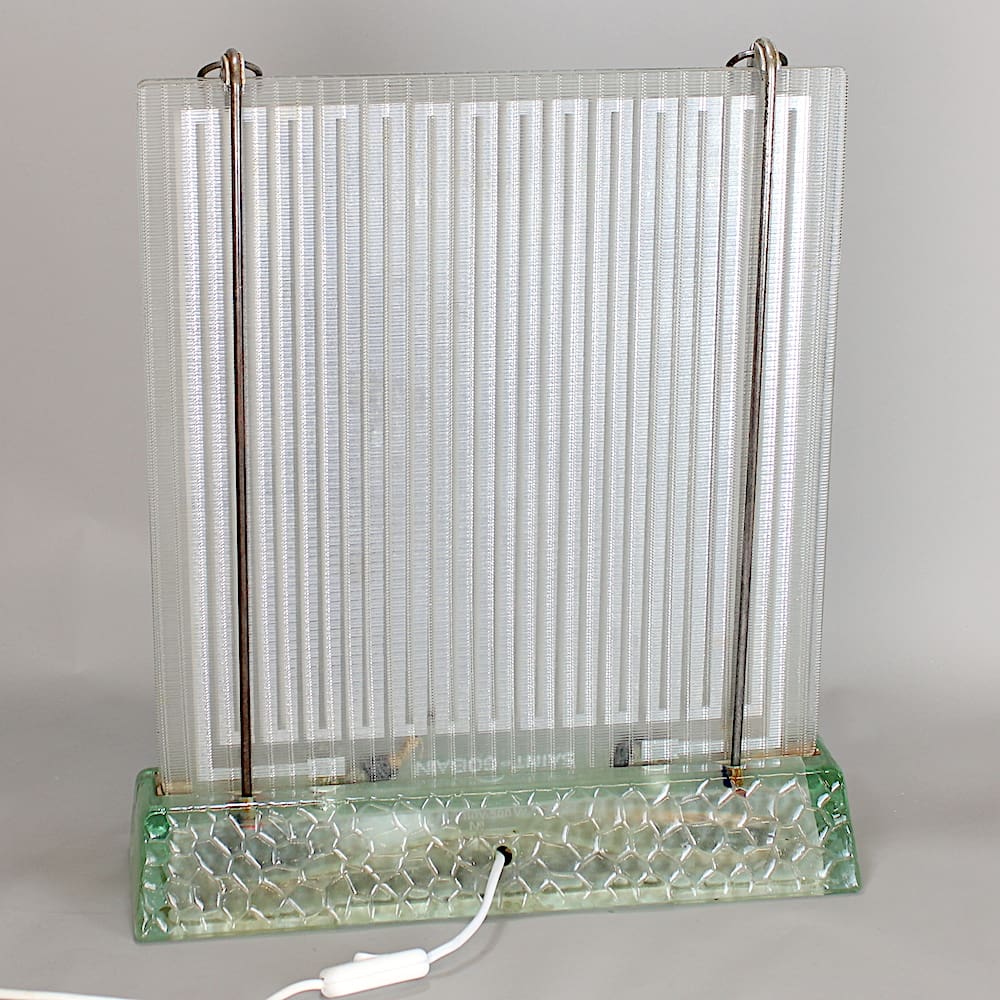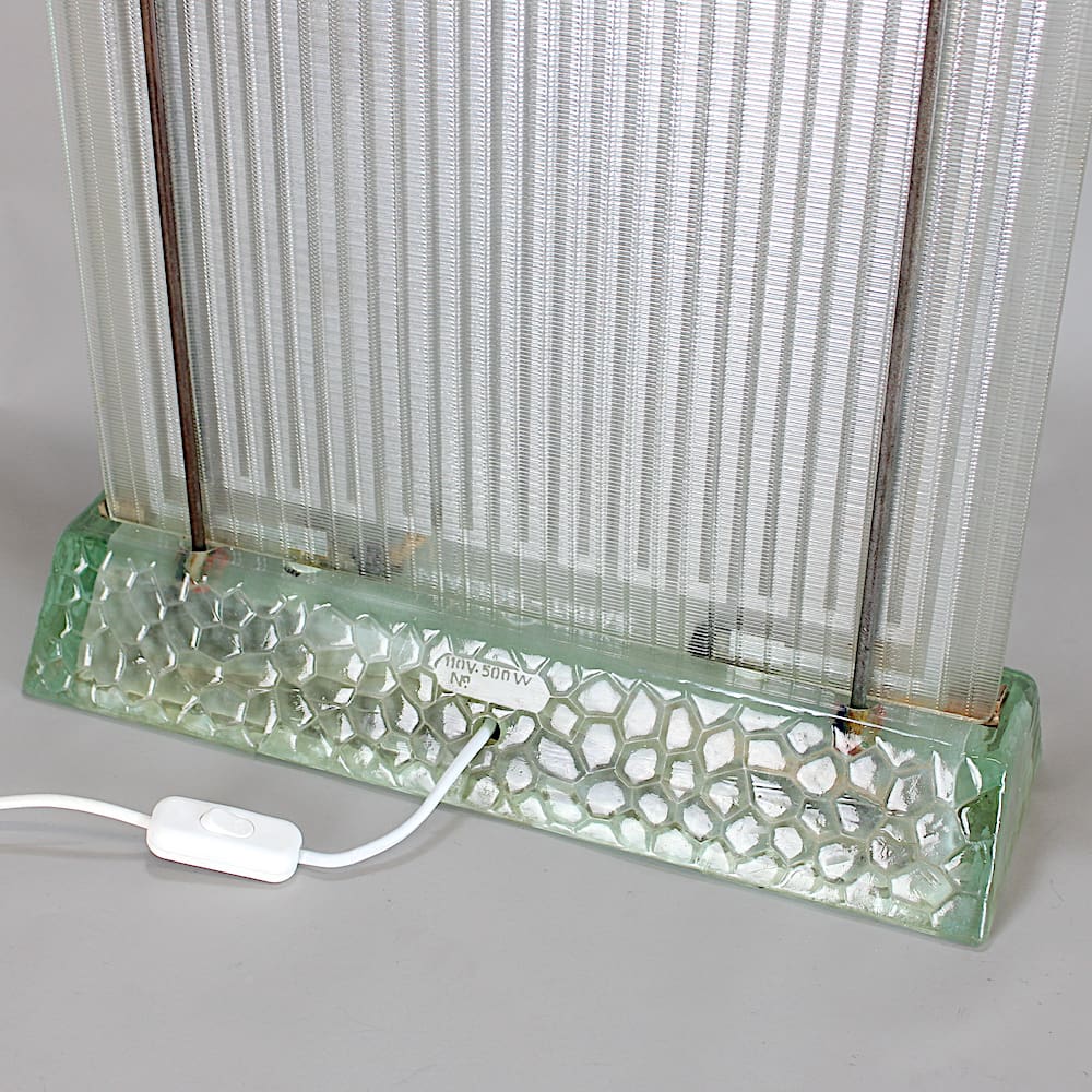 Electric glass radiator/lamp with moulded glass base, designed by Rene Coulon (1908-1997) for French glass maker Saint Gobain and in production from 1937 up until 1952.