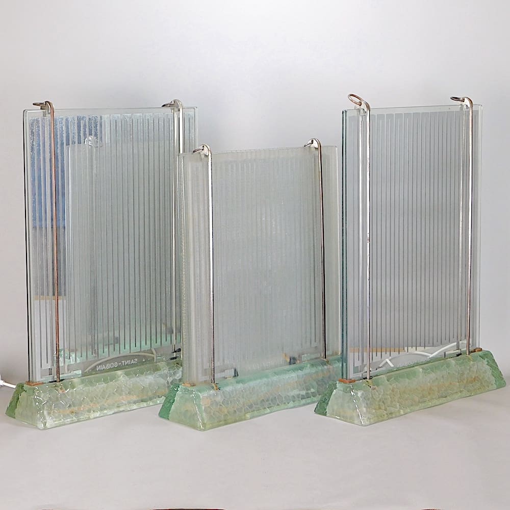 Electric glass radiator/lamp with moulded glass base, designed by Rene Coulon (1908-1997) for French glass maker Saint Gobain and in production from 1937 up until 1952.