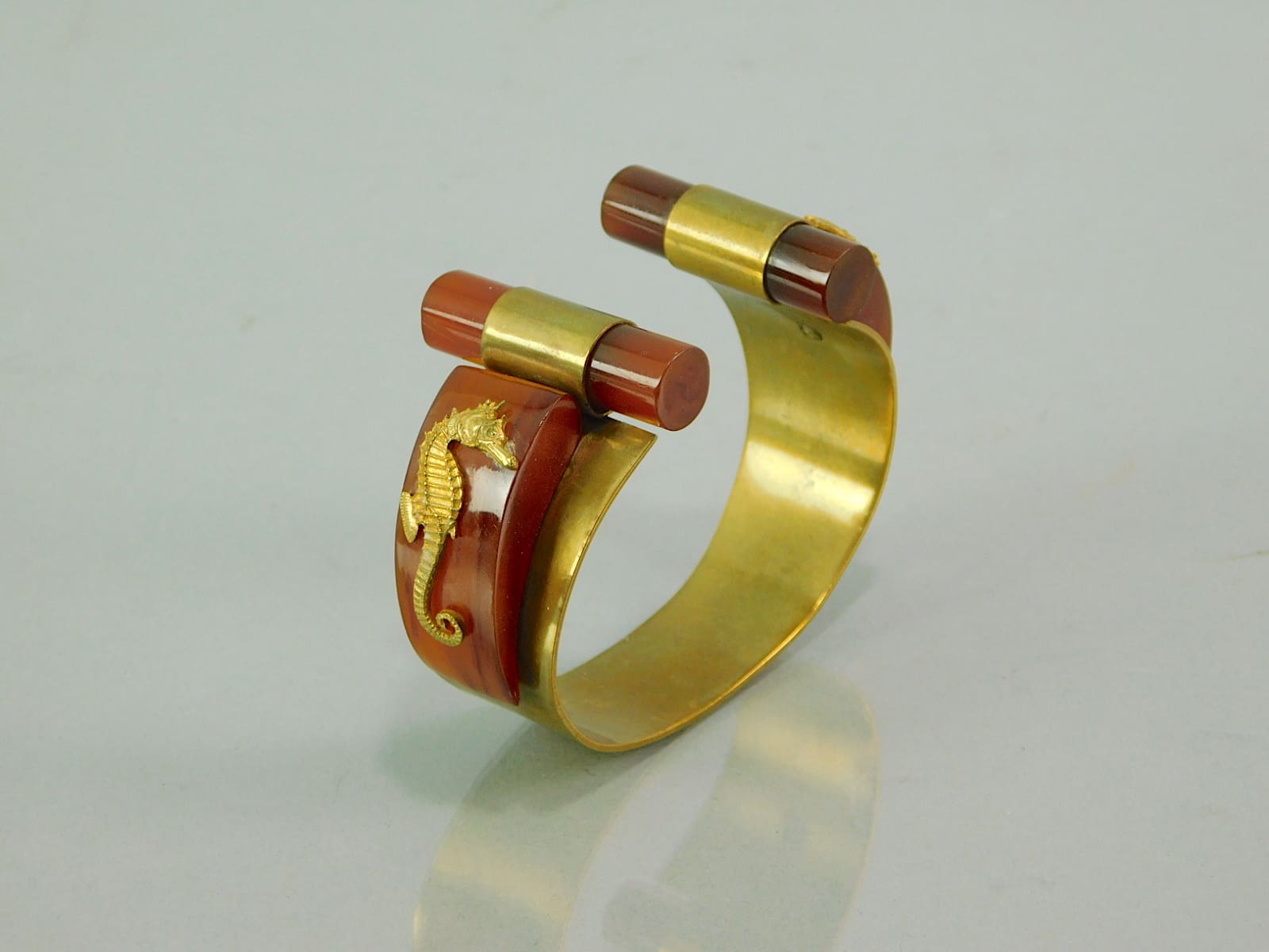 French art deco phenolic amber and gilt metal bangle. Made by JHP Prissier – Jean Painleve.