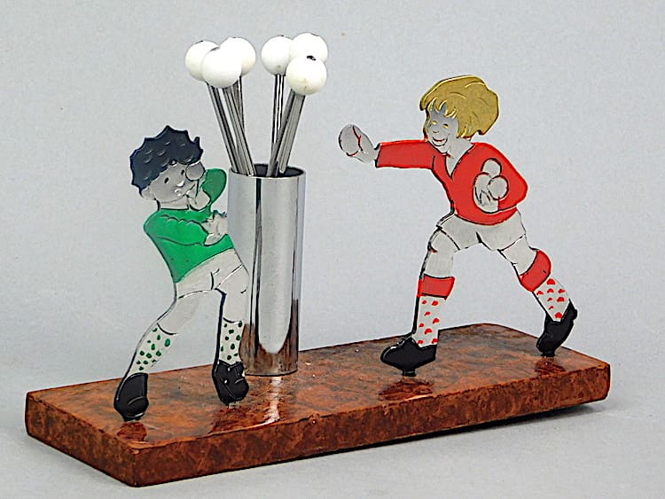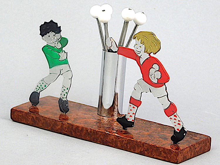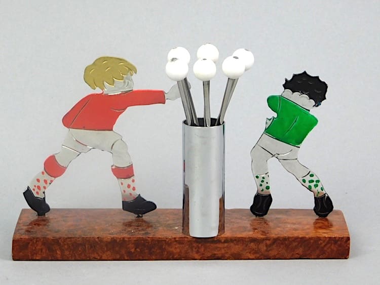 French hand painted art deco cocktail sticks set, an unsigned Sudre.