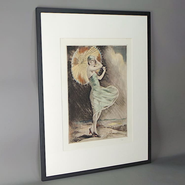 French original 1930s engraving – an aquatint and drypoint picture known as the Umbrella.