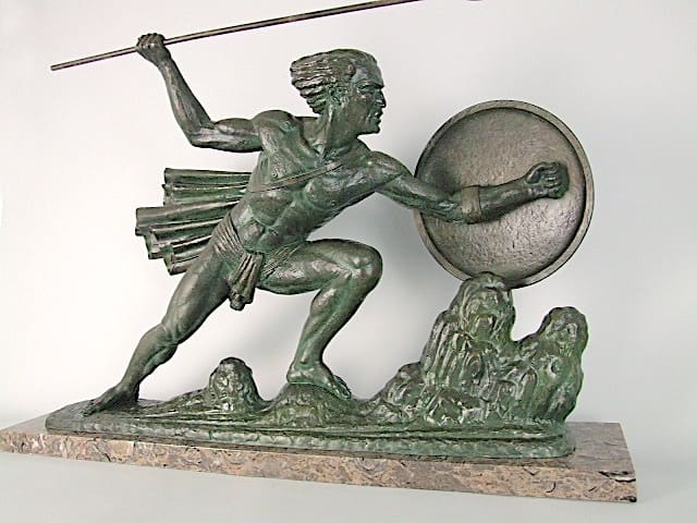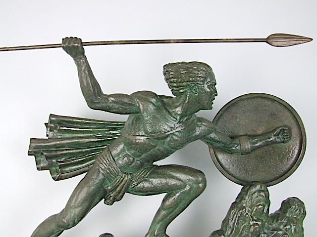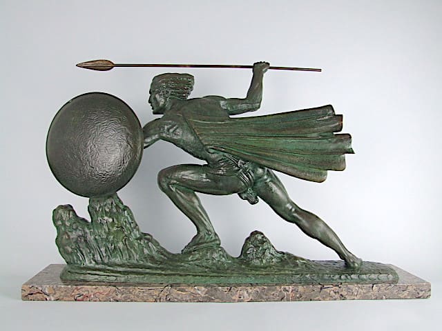 French spelter male warrior, unsigned but I believe by Bouraine.