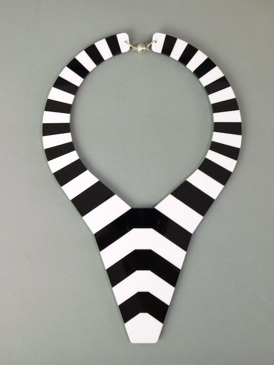 Art deco phenolic resin striped tie collar necklace. Its catch is magnetic.