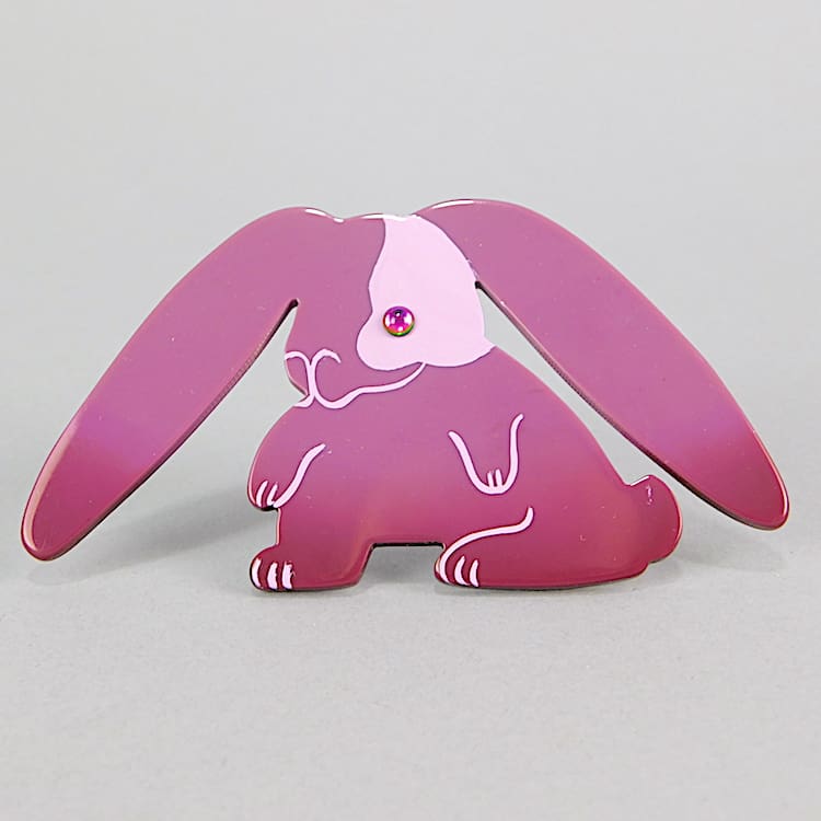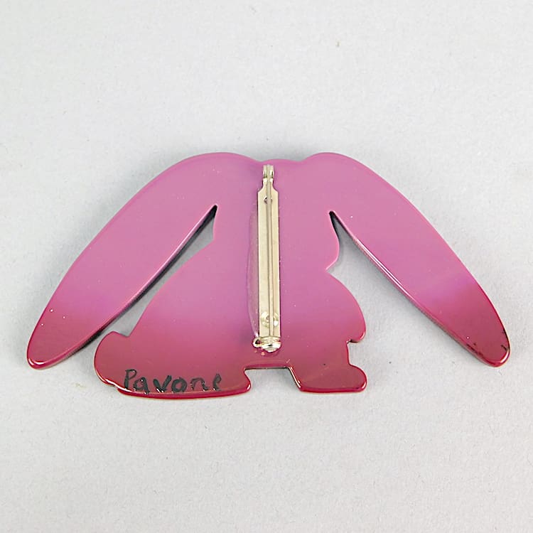French hand painted vintage galalith, hand signed rabbit brooch by Marie-Christine Pavone.
