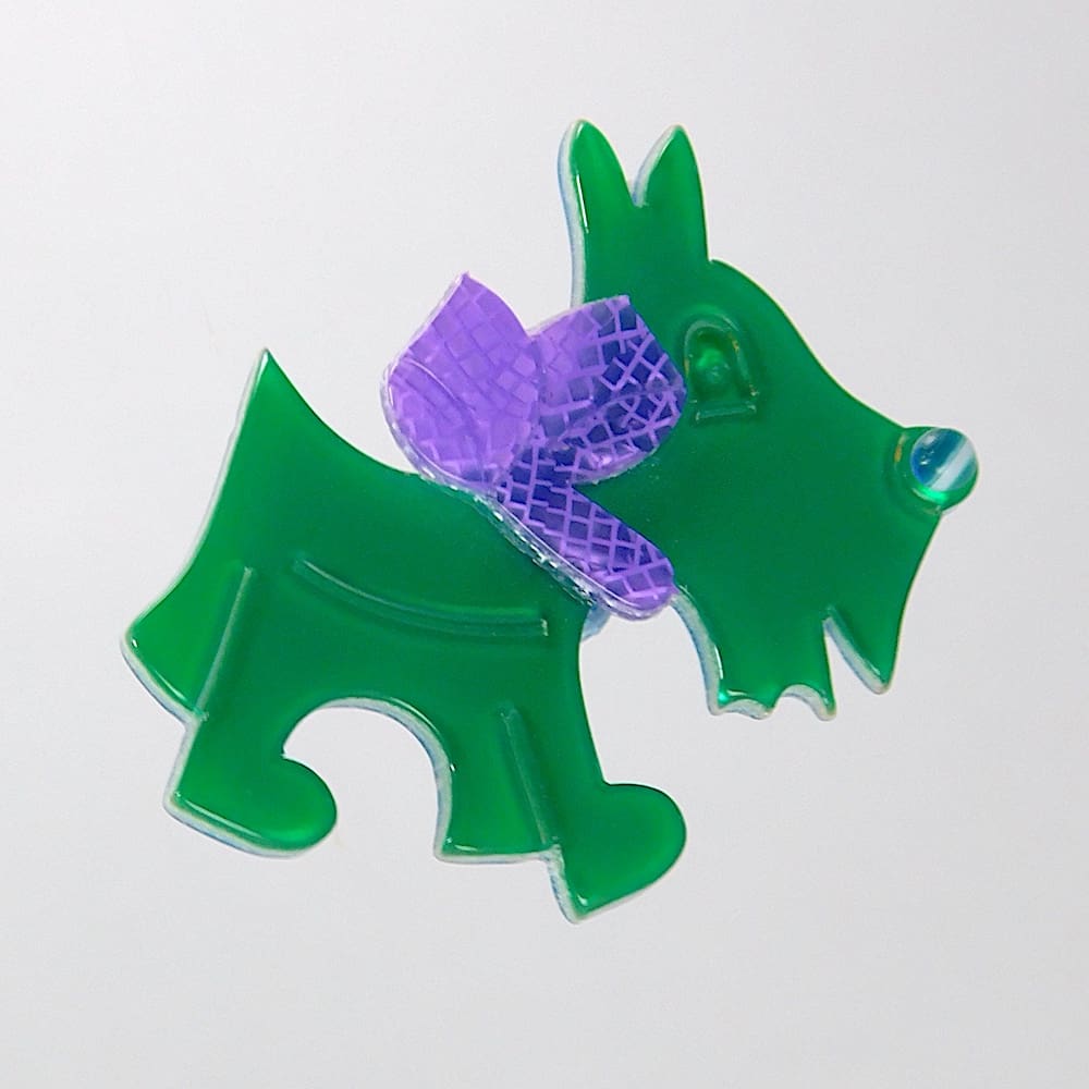 Cute scotty dog by Lea Stein called Totie. Signed on the safety V clasp.