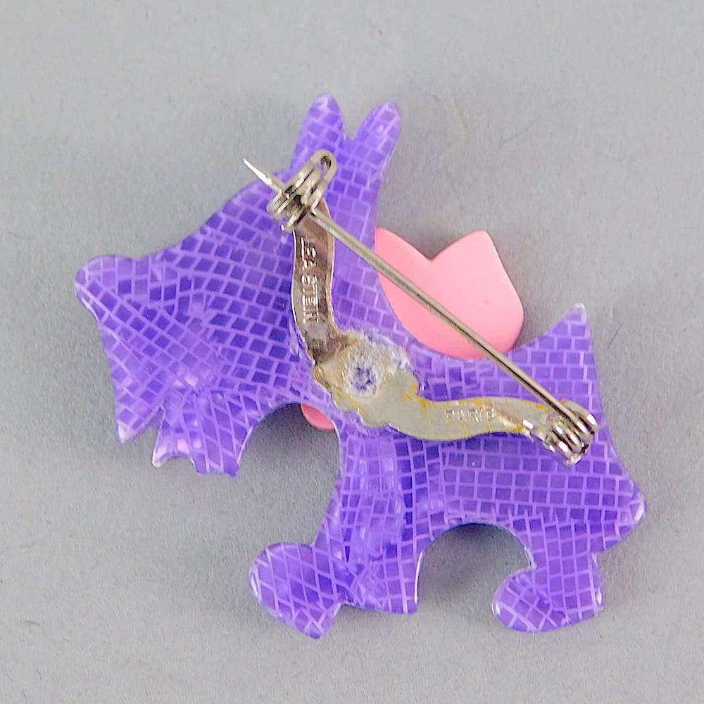 Cute scotty dog by Lea Stein called Totie. Signed on the safety V clasp.
