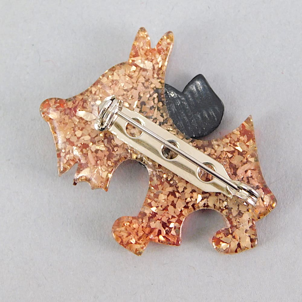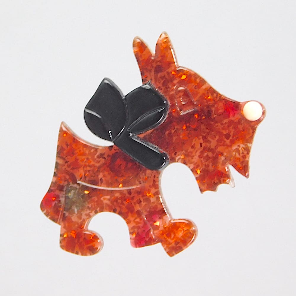 Scotty dog by Lea Stein. Signed on the safety V clasp.