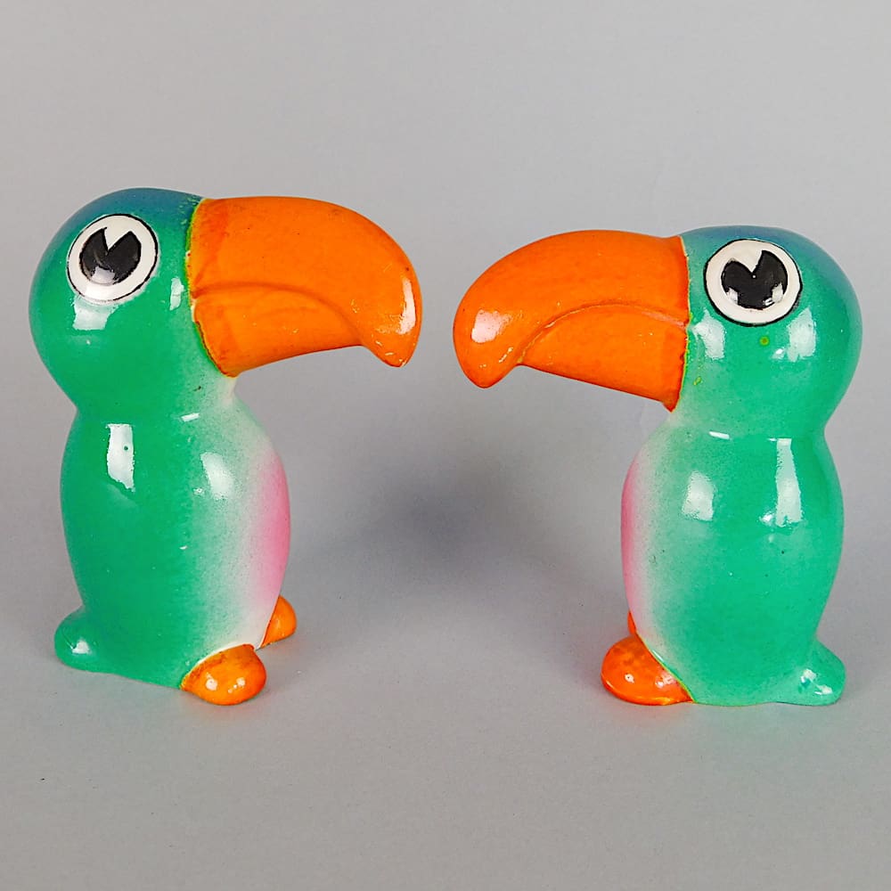 Ceramic art deco toucan salt and pepper shaker set.