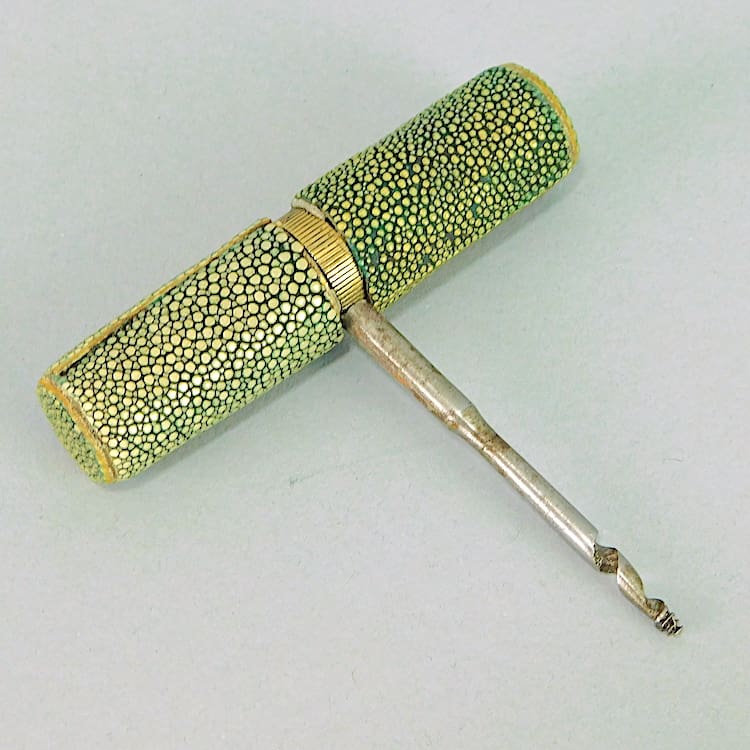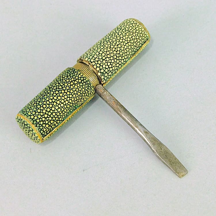 Rare shagreen covered mini travel tool set.
