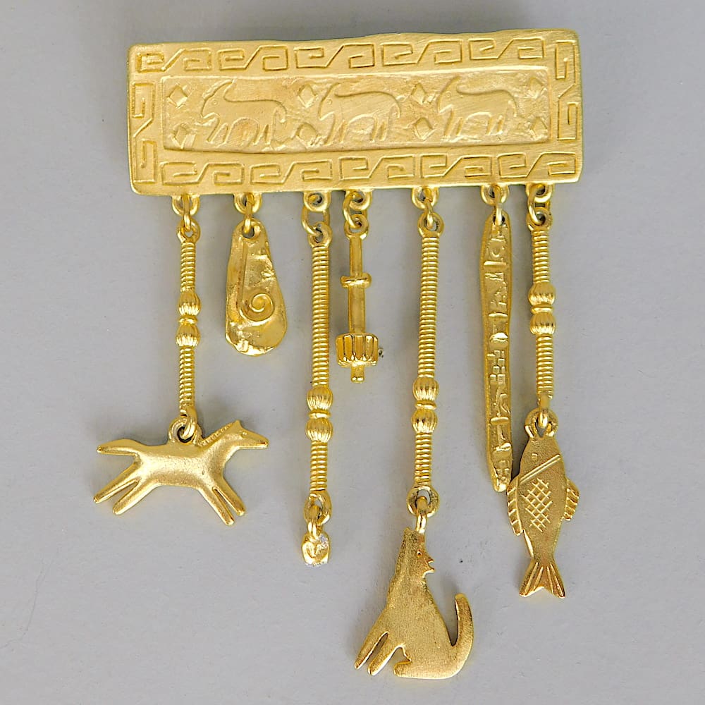 Vintage Jonette Jewellery bar brooch with charms.