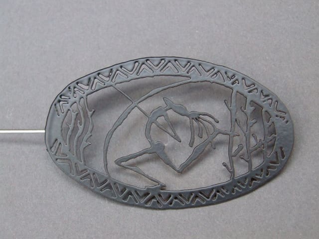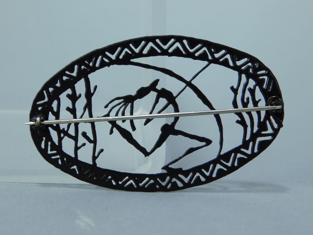 This black metal brooch is from a vintage range called Ferraggioli, which was made by Pierre Bex in the early 1960’s. Fitted with a roll safety clasp and signed Ferraggioli to the reverse.