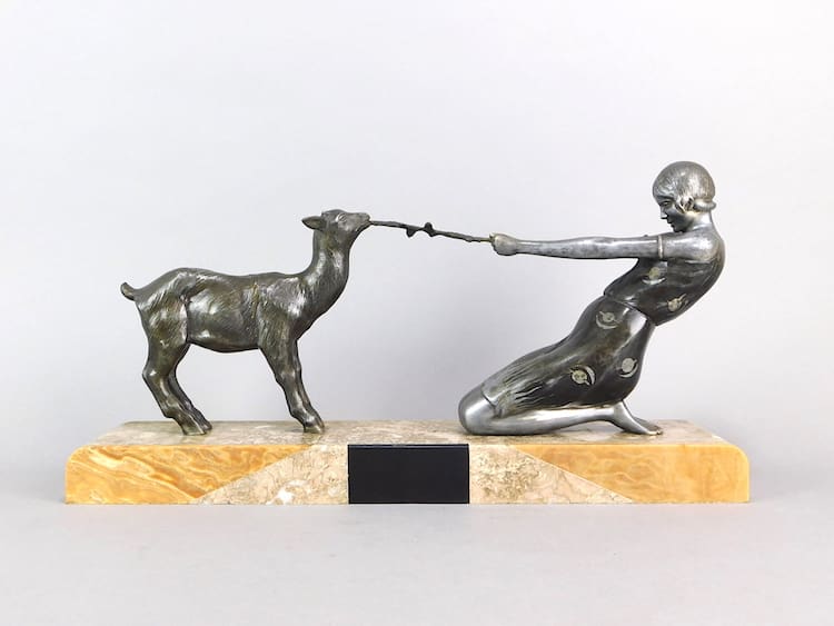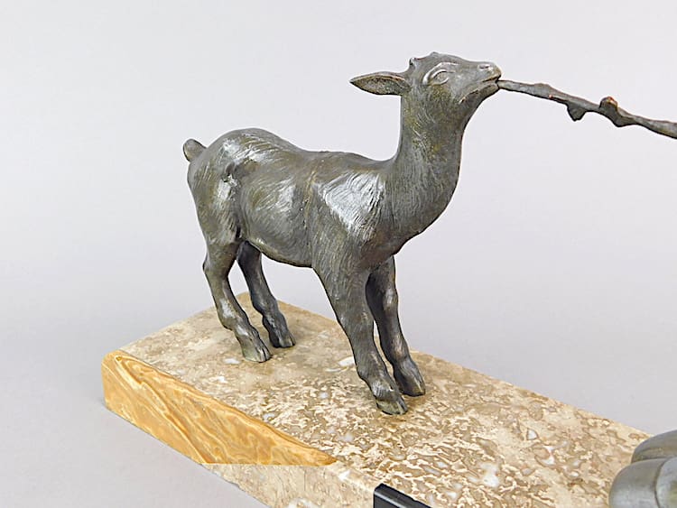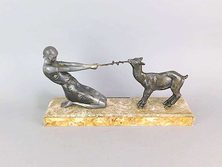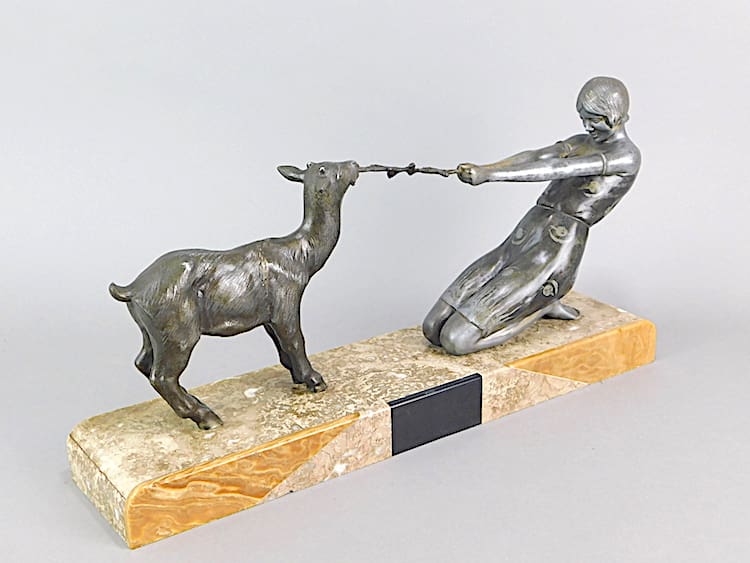 A French spelter lady and goat group – an unsigned Janle.