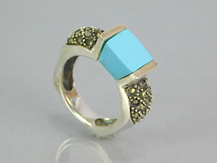 Contemporary silver and turquoise onyx ring.