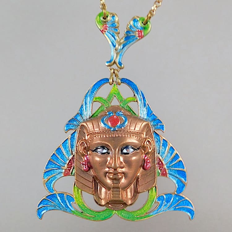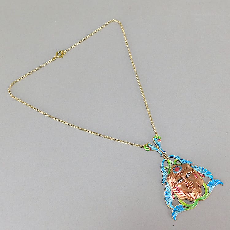 Czech copper and enamel art deco necklace attributed to Max Neiger.