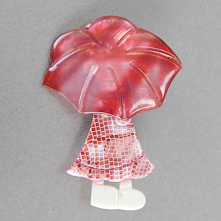 As with many early Lea Stein brooches, this one is missing its original safety clasp but is fitted with an unsigned clasp.