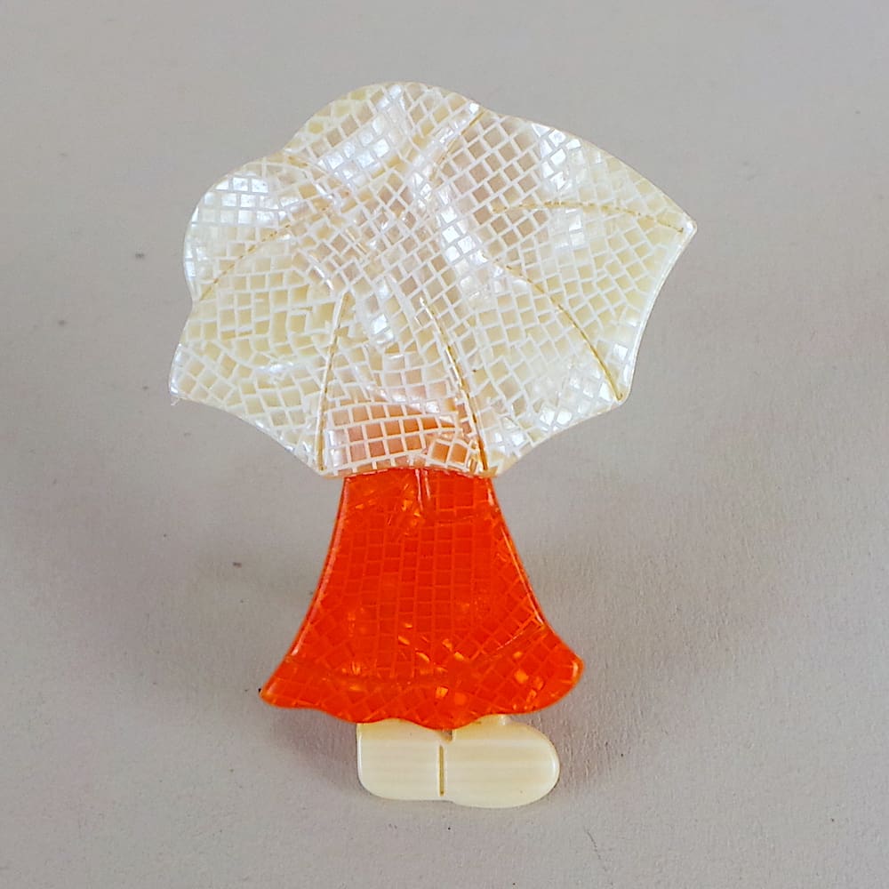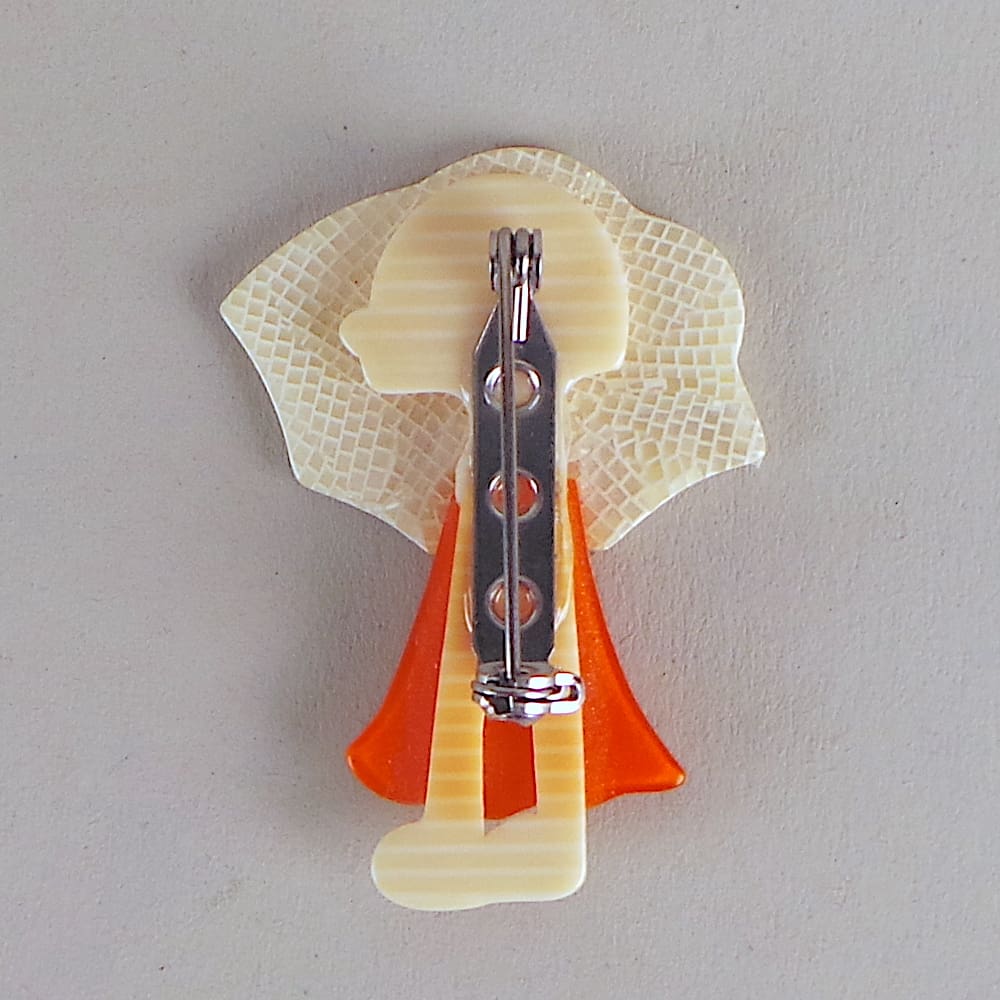 As with many early Lea Stein brooches, this one is missing its original safety clasp but is fitted with an unsigned clasp.