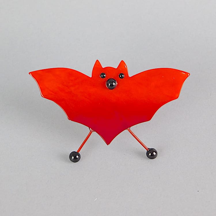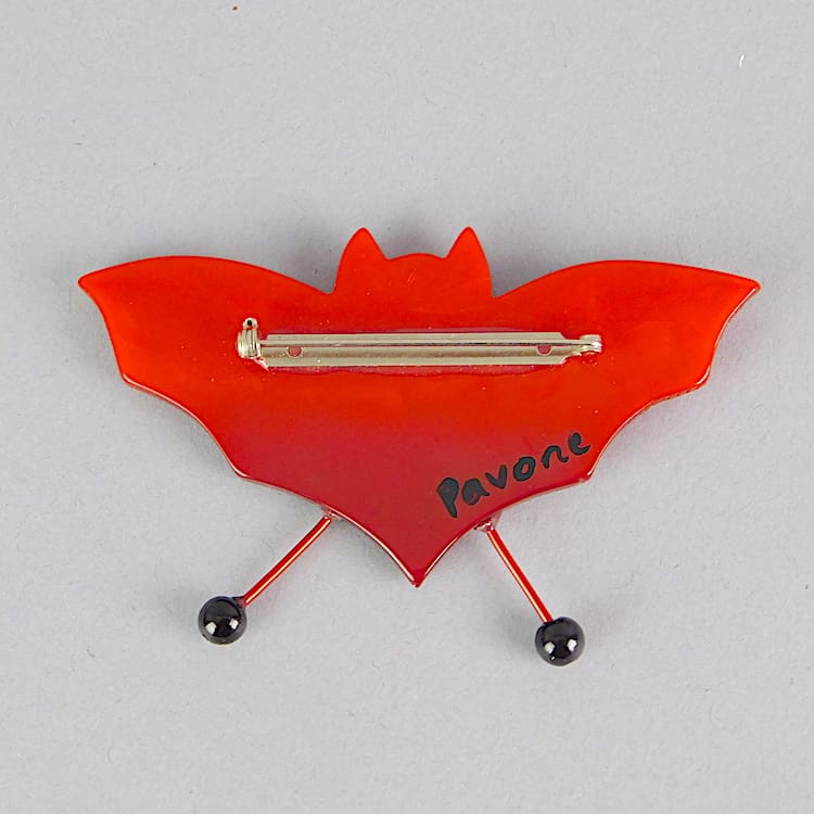 French vintage galalith hand made bat brooch by Marie-Christine Pavone. Hand signed to the reverse and fitted with a roll safety clasp.