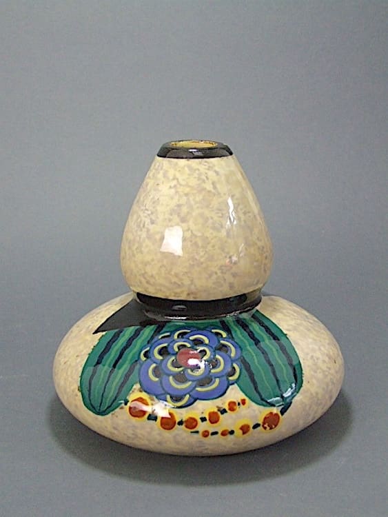 French bulbous heavy ceramic vase. Hand painted and signed D’Argyl to the base and is finished in a high glaze.