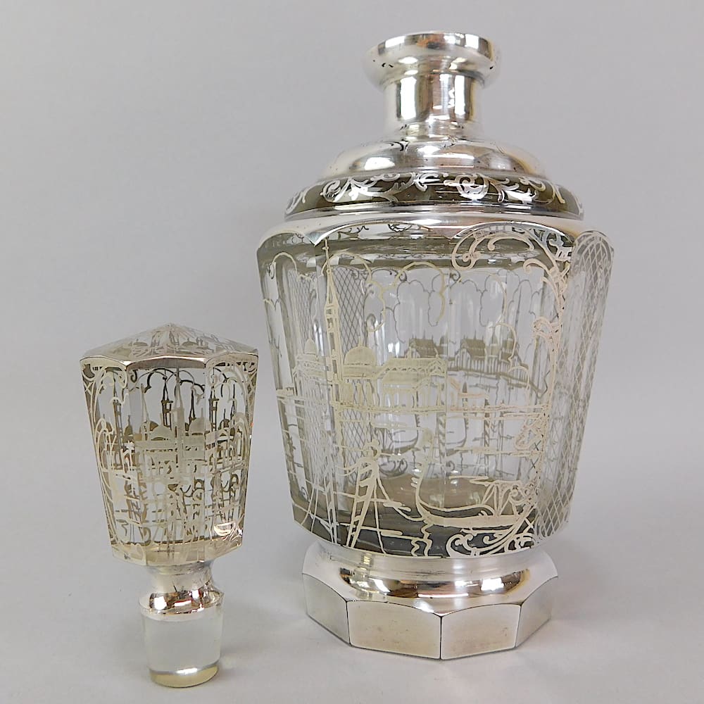 A hand painted scene of Venice is shown on all 7 items, including the stopper.