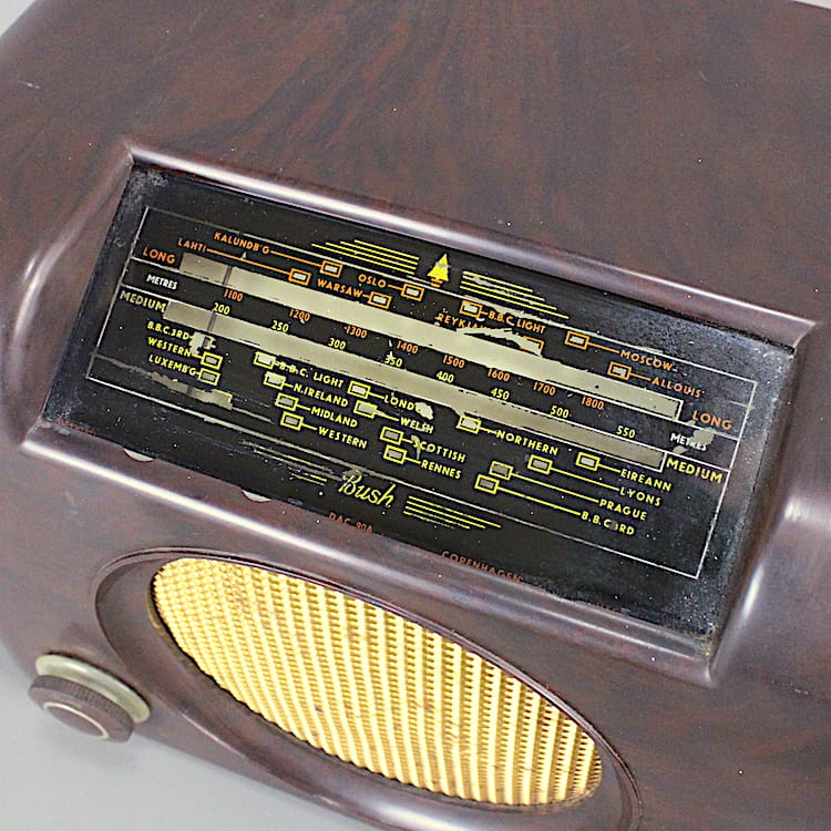 Famous early British Radio company Bush, founded in 1932, now owned by Sainsbury’s/Arogs.