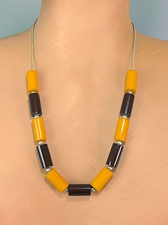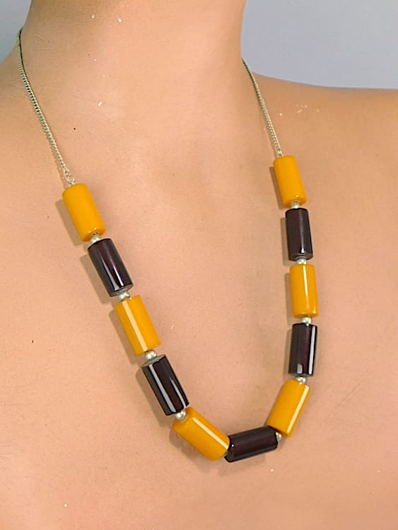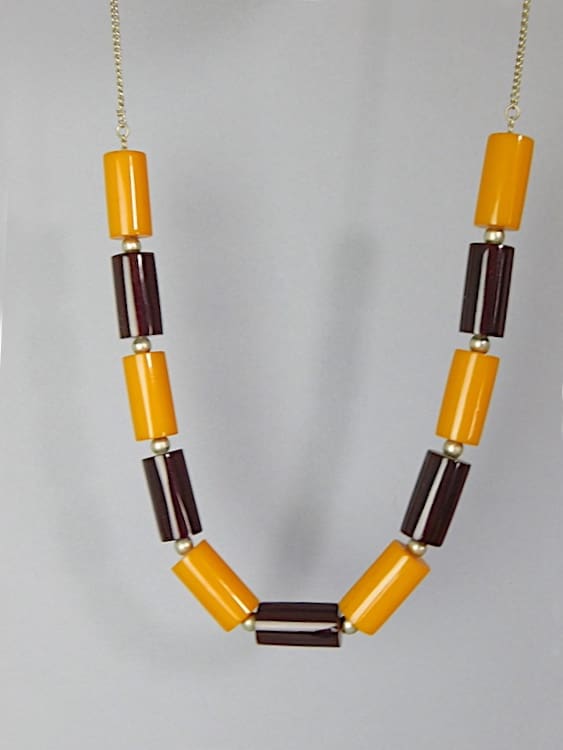 Amber and caramel celluloid tubes necklace.