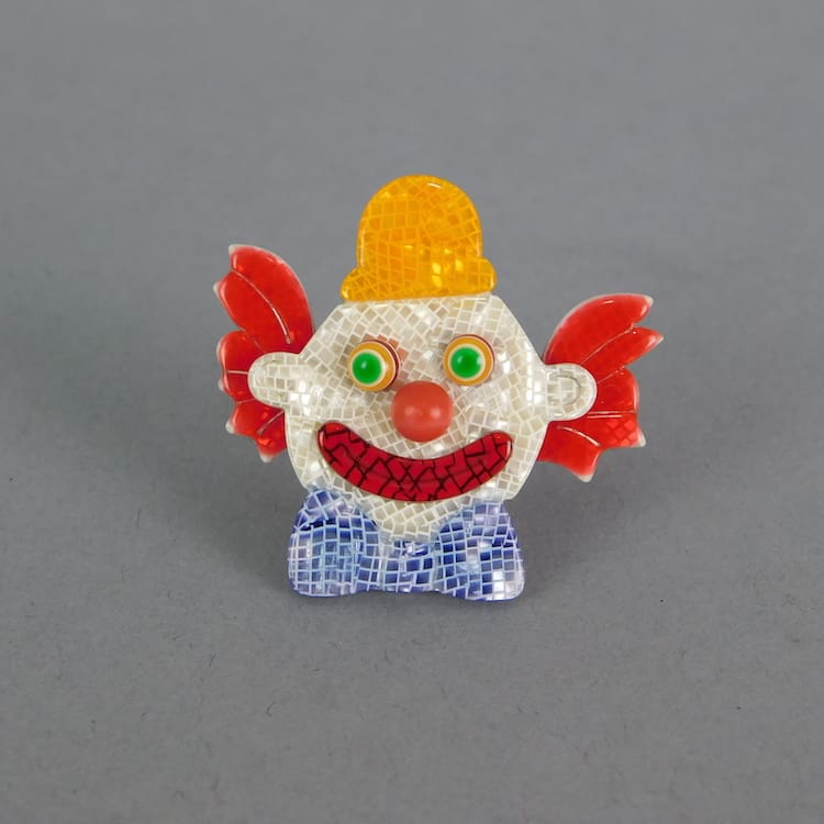 Rare early vintage clown by Lea Stein. He measures 1.5 inches (4cm) high. In as new condition.