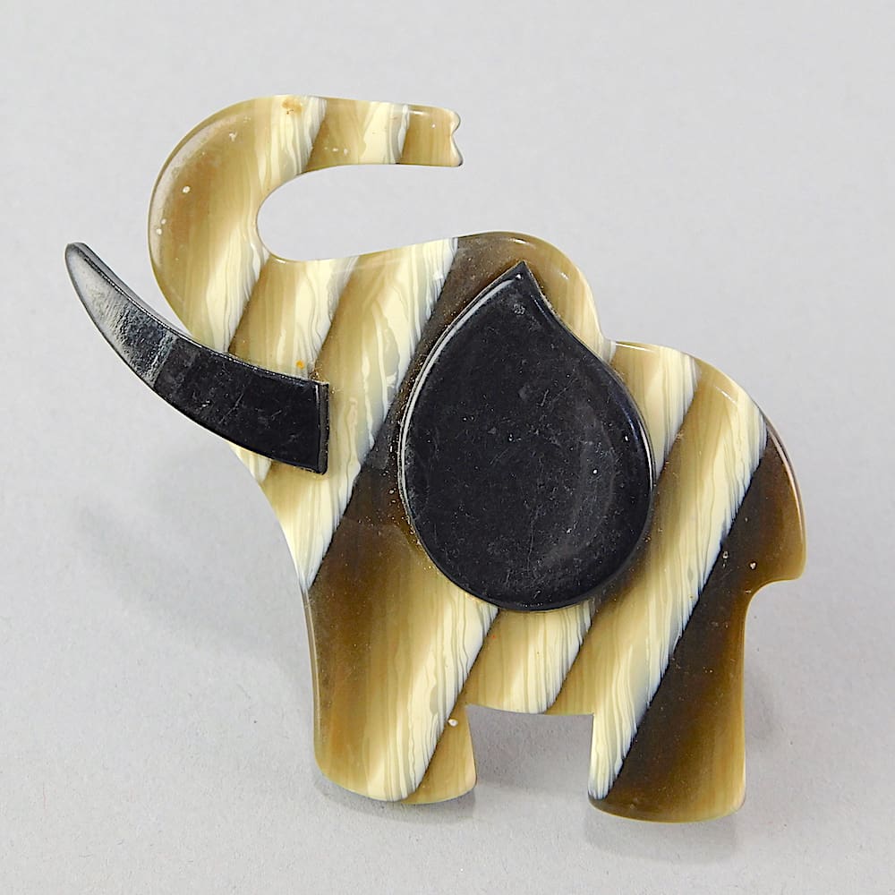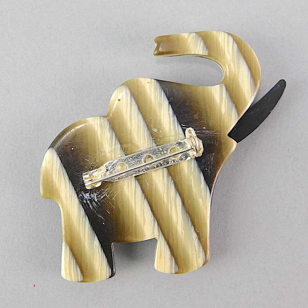 This elephant brooch is an unsigned piece by Lea Stein. Made in 1968 and fitted with a roll safety clasp. He is the smaller of the two elephants.